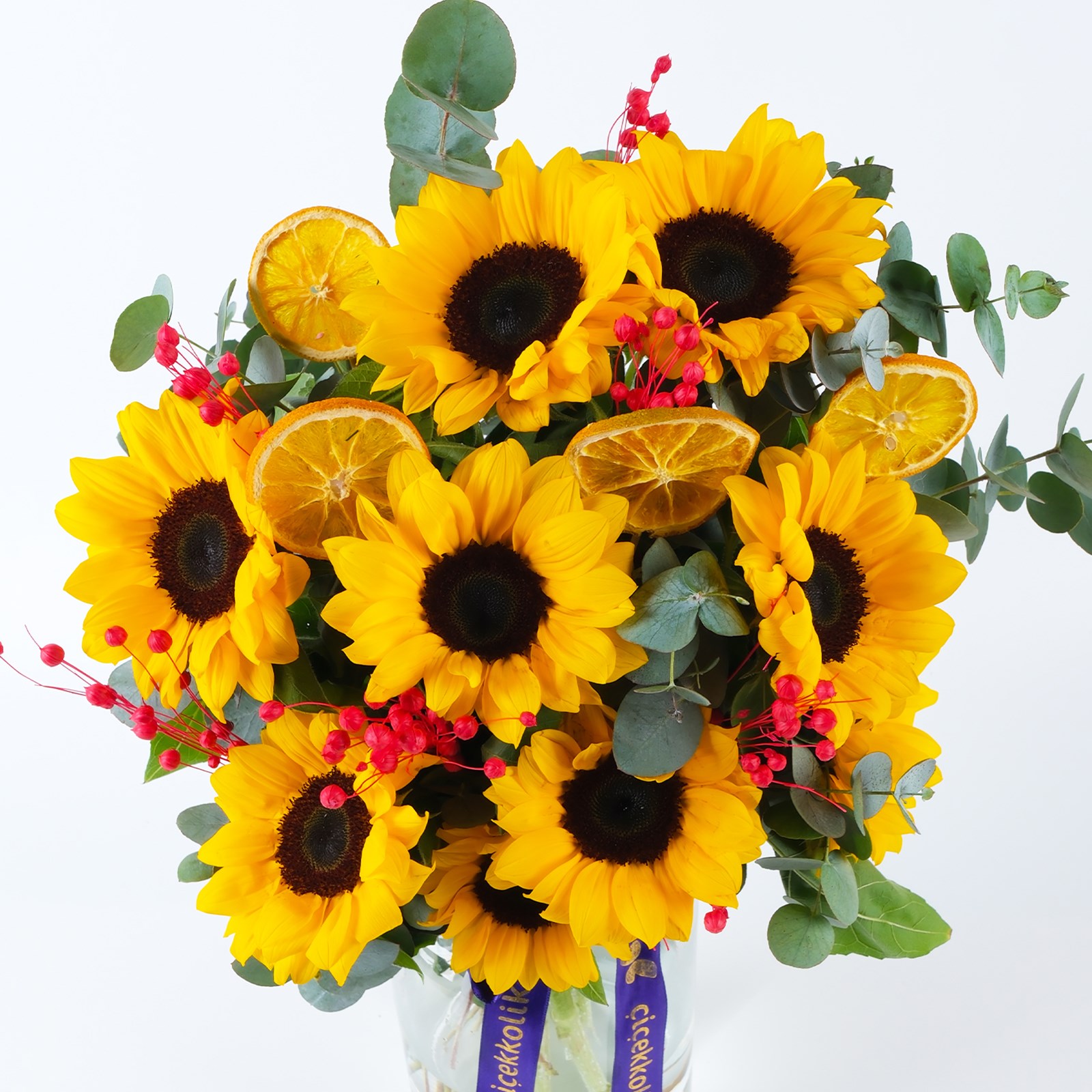 Çiçek Türleri:Ayçiçekleri,kuru çiçekler, okaliptus yaprakları