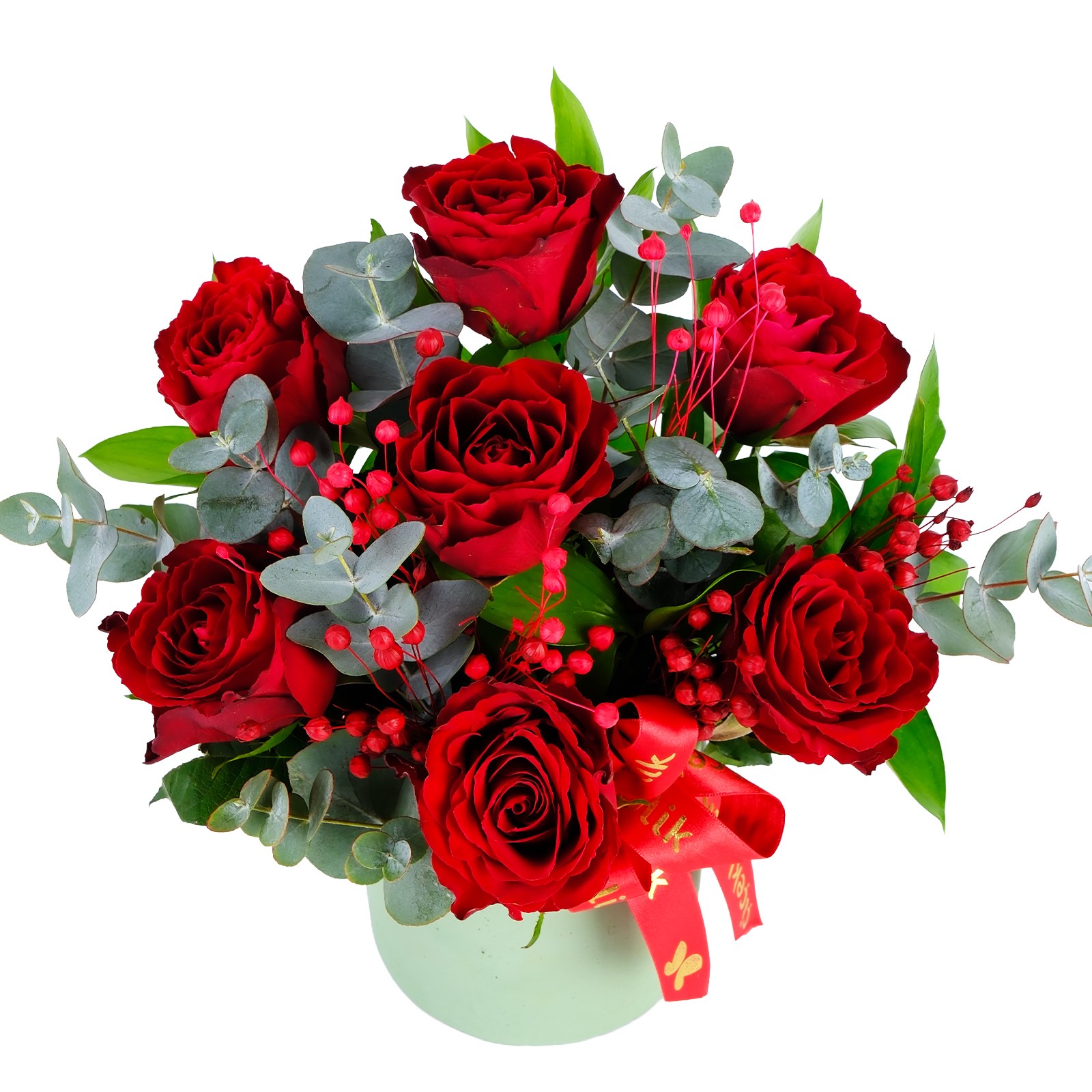 • Ürün İçeriği: Kırmızı güller,kuru çiçekler, okaliptus