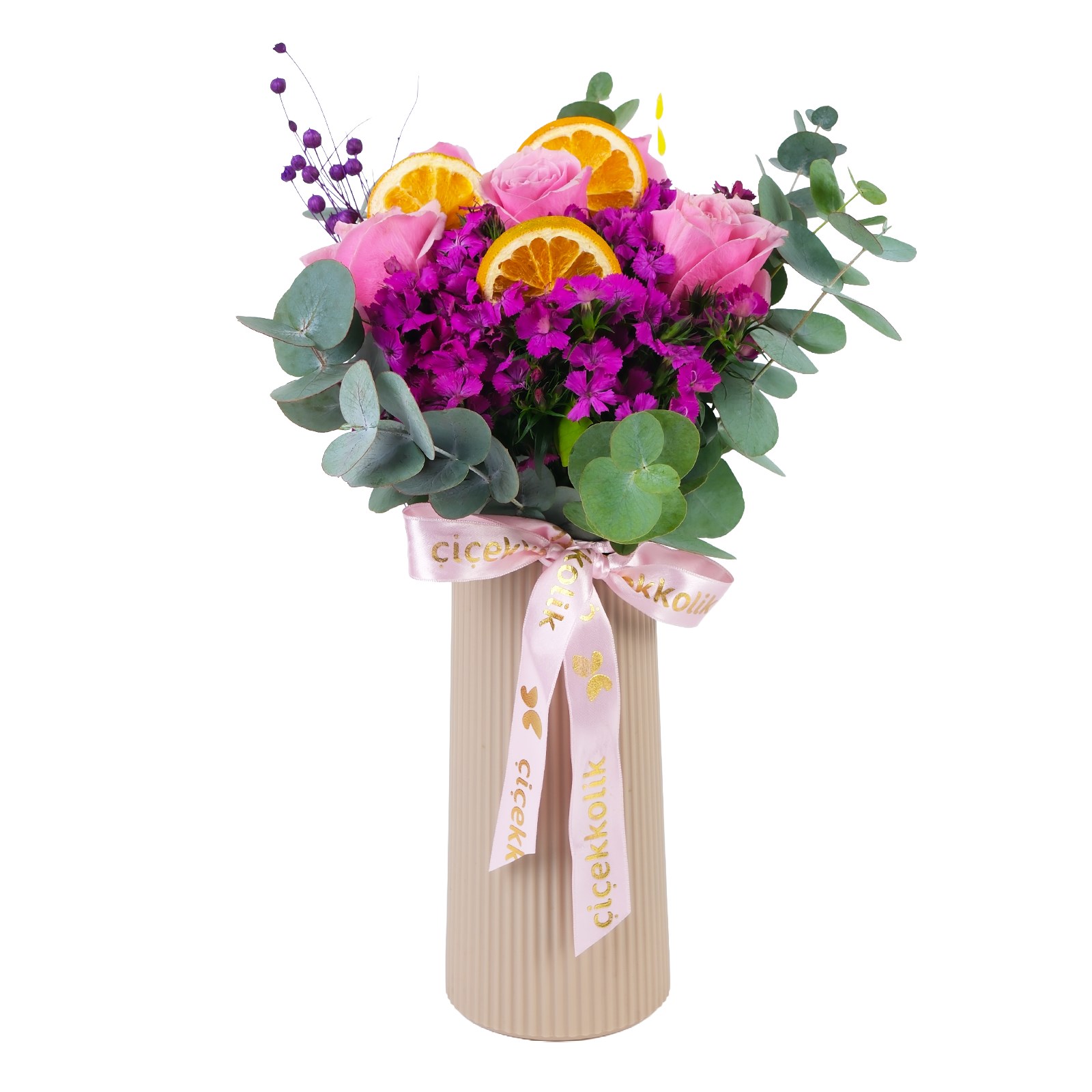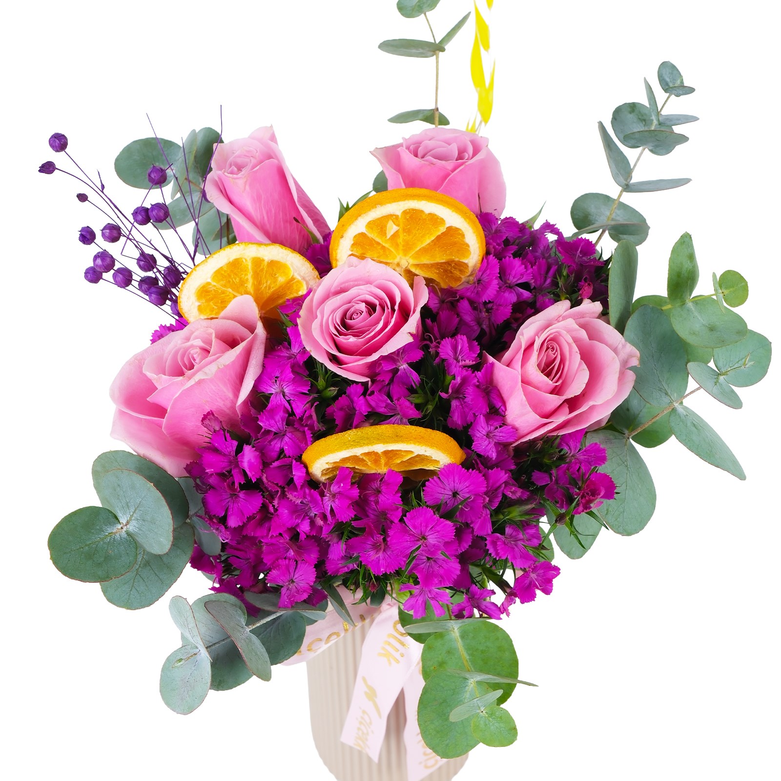 Çiçek Türleri:Pembe güller, hüsnüyusuf, okalptus yaprakları