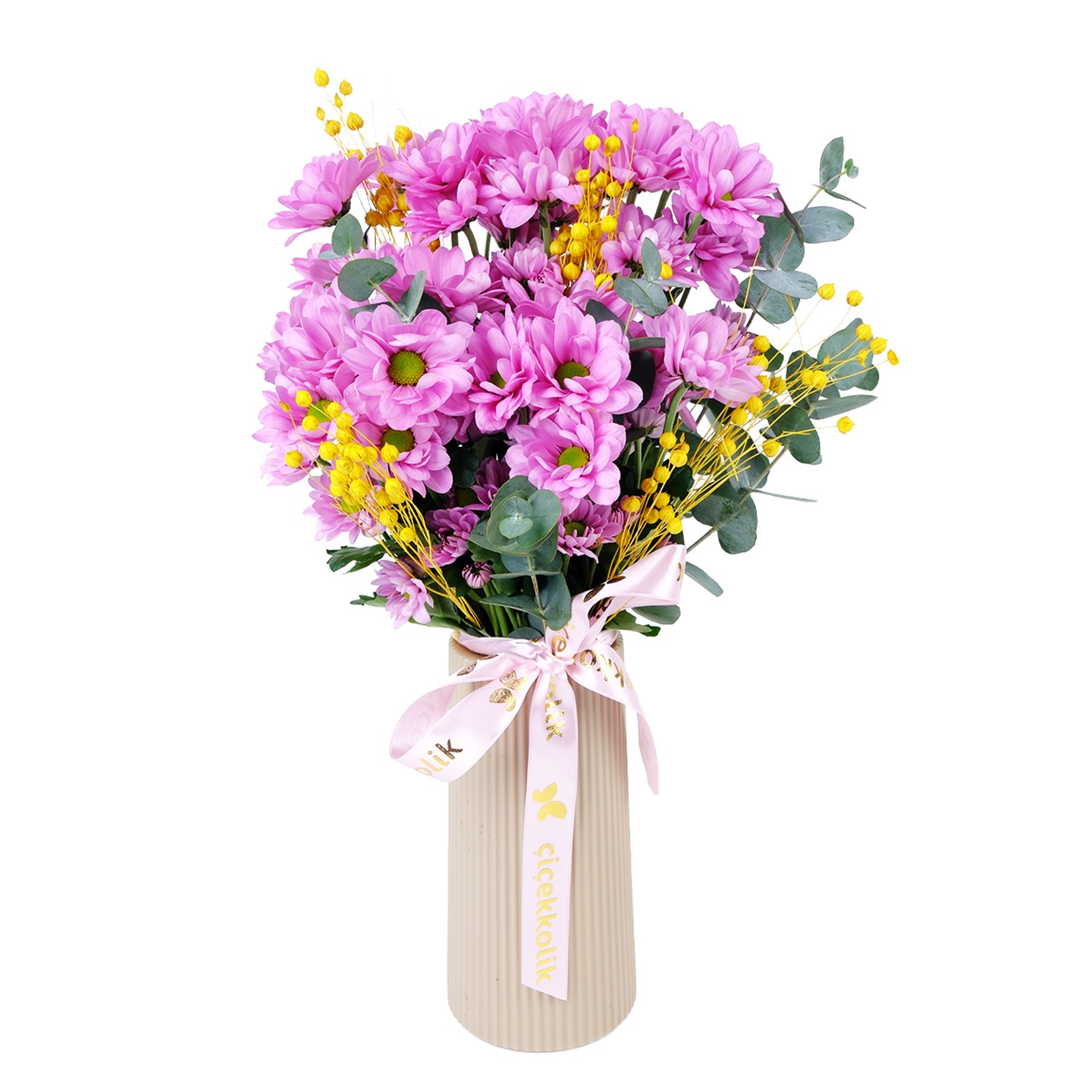 Classic Moonlit Pembe Papatyalar - Enerjik Papatya Aranjmanı