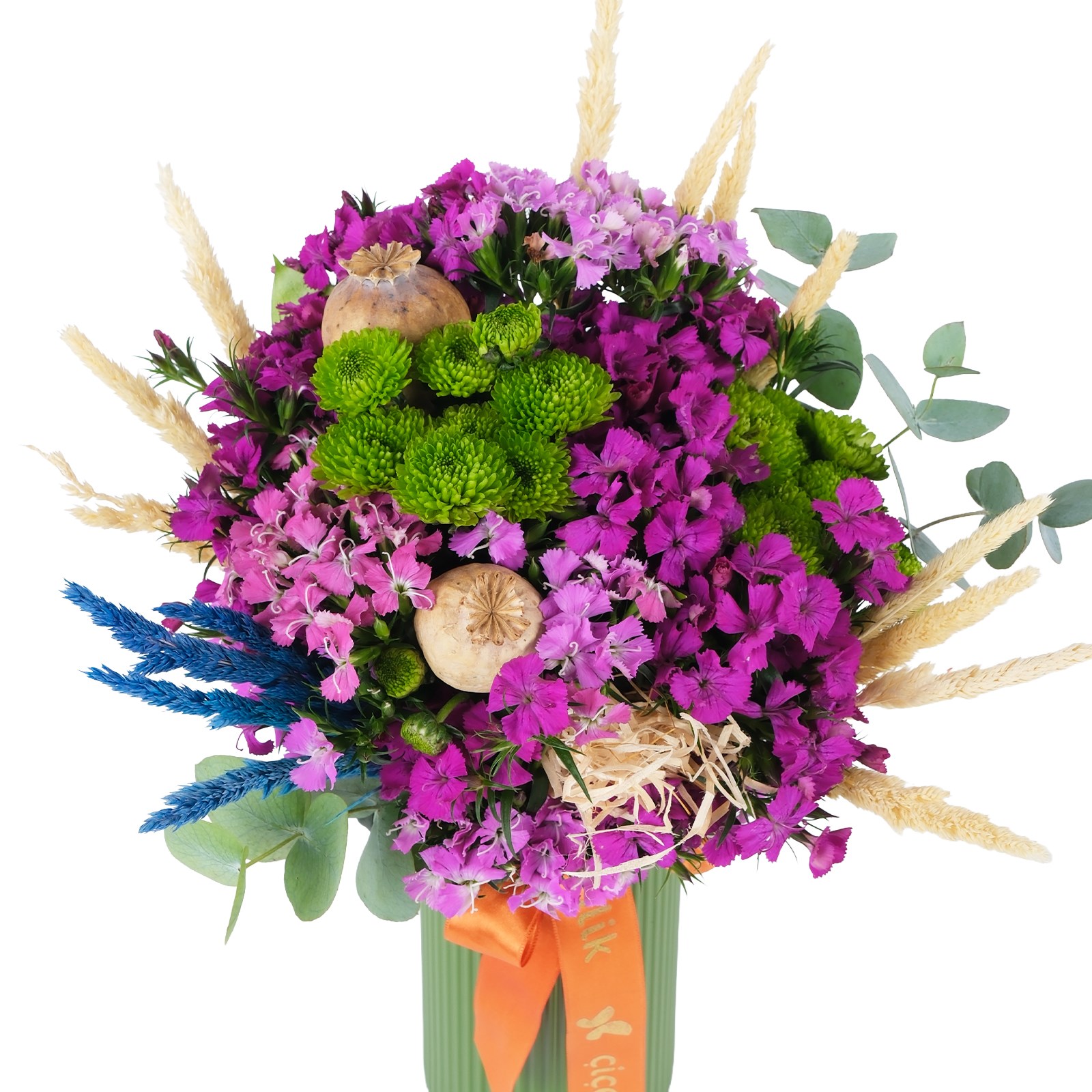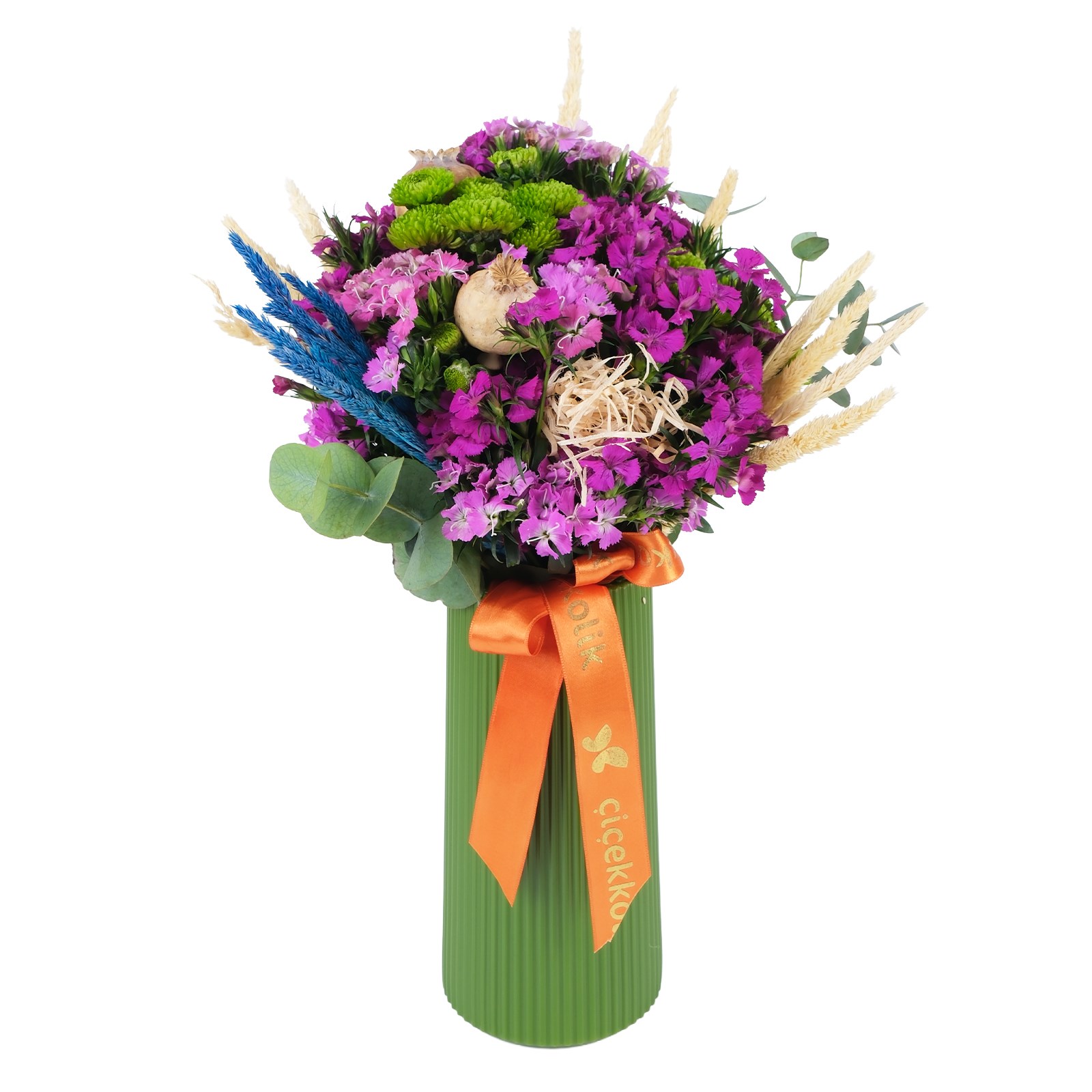Hüsnüyusuf'un romantizmi Colorful Pretty Crash Çiçek Aranjmanı, aşkın en tutkulu halini yansıtıyor. Modern tasarım sofistike kontrastı, çarpıcı bir görsel sunarken hüsnüyusuf,kuru çiçekleriyle eşsiz bir dokunuş kazanılmıştır.