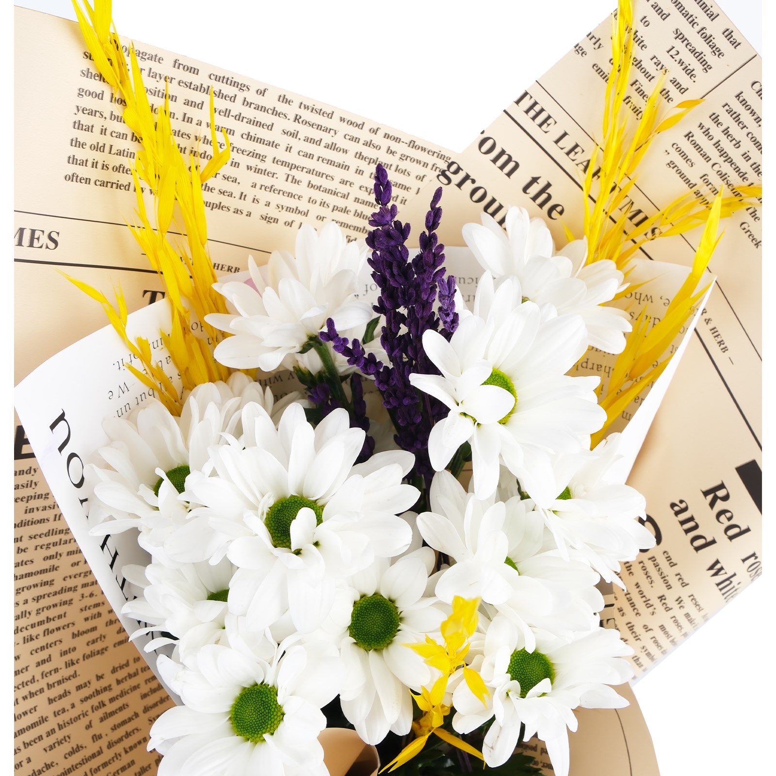 Çiçek Türleri:Beyaz papatyaları, kuru çiçekler, lavantalar