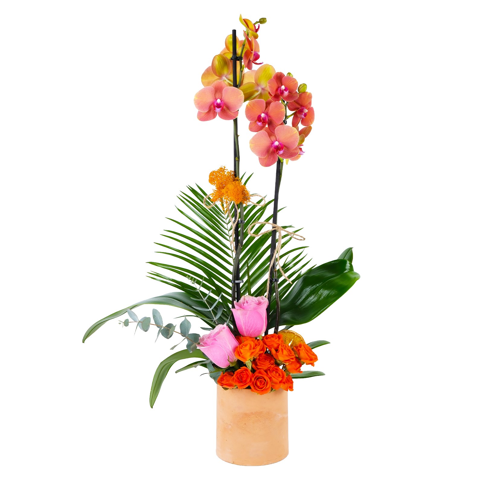 Zarif görünümü ve eşsiz rengiyle Dazzling Bloom 2 Dal Ateş Orkide, yaşam alanlarına modern bir dokunuş kazandırır. Kiremit Rengi Beton Saksısı detayıyla hem sofistike hem de dikkat çekici bir tasarım sunar.