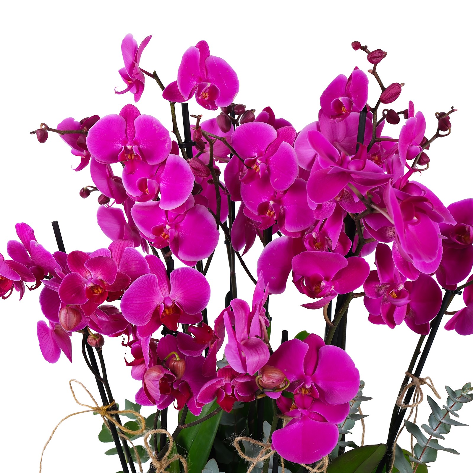 Saflığın ve zarafetin sembolü mor orkide, doğal örgü sepet içerisinde yeşil yapraklar, okaliptus dalları ve yeşil yosunlar ile zenginleştirilerek hazırlanmıştır. Hem ev hem ofis ortamına şıklık katan bu özel aranjman, sevdiklerinize kalıcı bir mutluluk armağan eder.