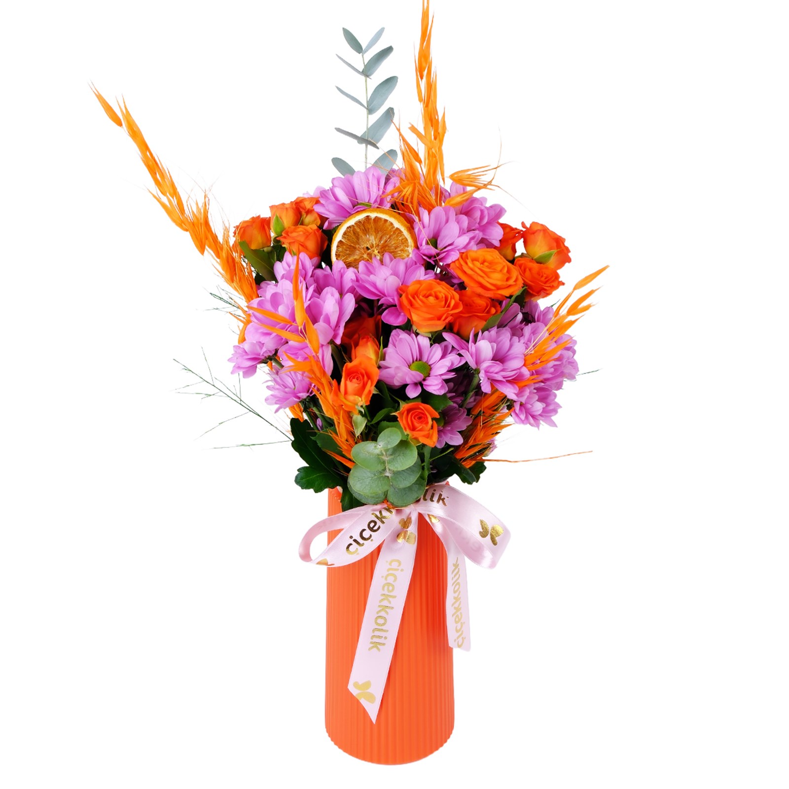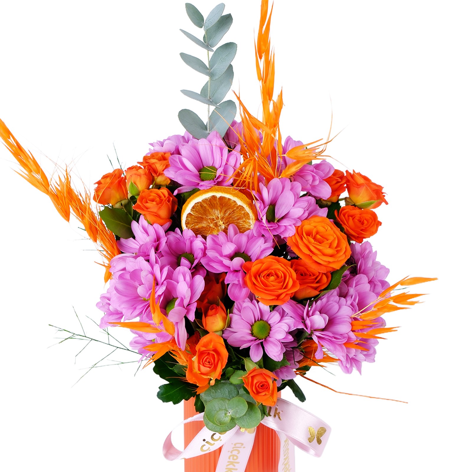 Çiçek türleri:Pembe papatyalar,Turuncu güller