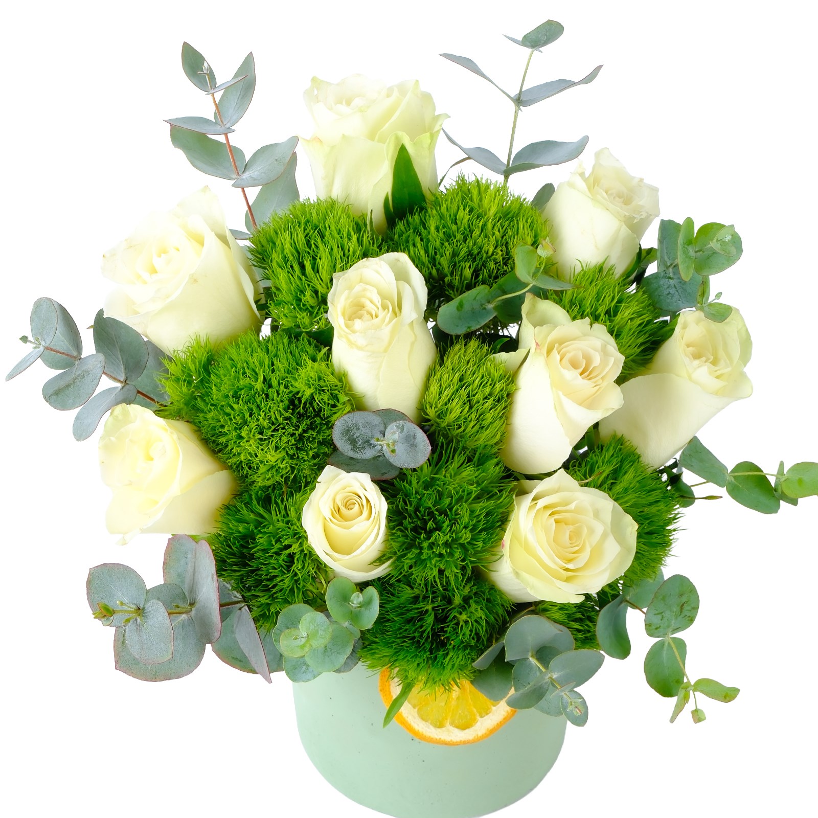 Enerjisi yüksek renklerin buluştuğuGreentirk White Güller, modern ve ferah bir görünüm sunar. Beyaz güller ve kuru çiçek dalları zarif bir kompozisyon oluşturur.