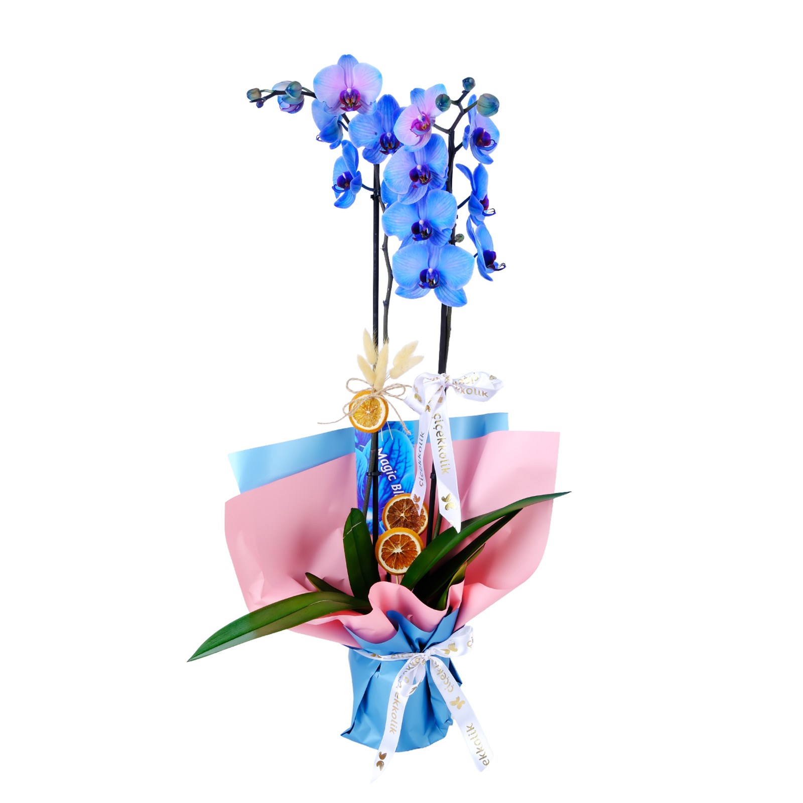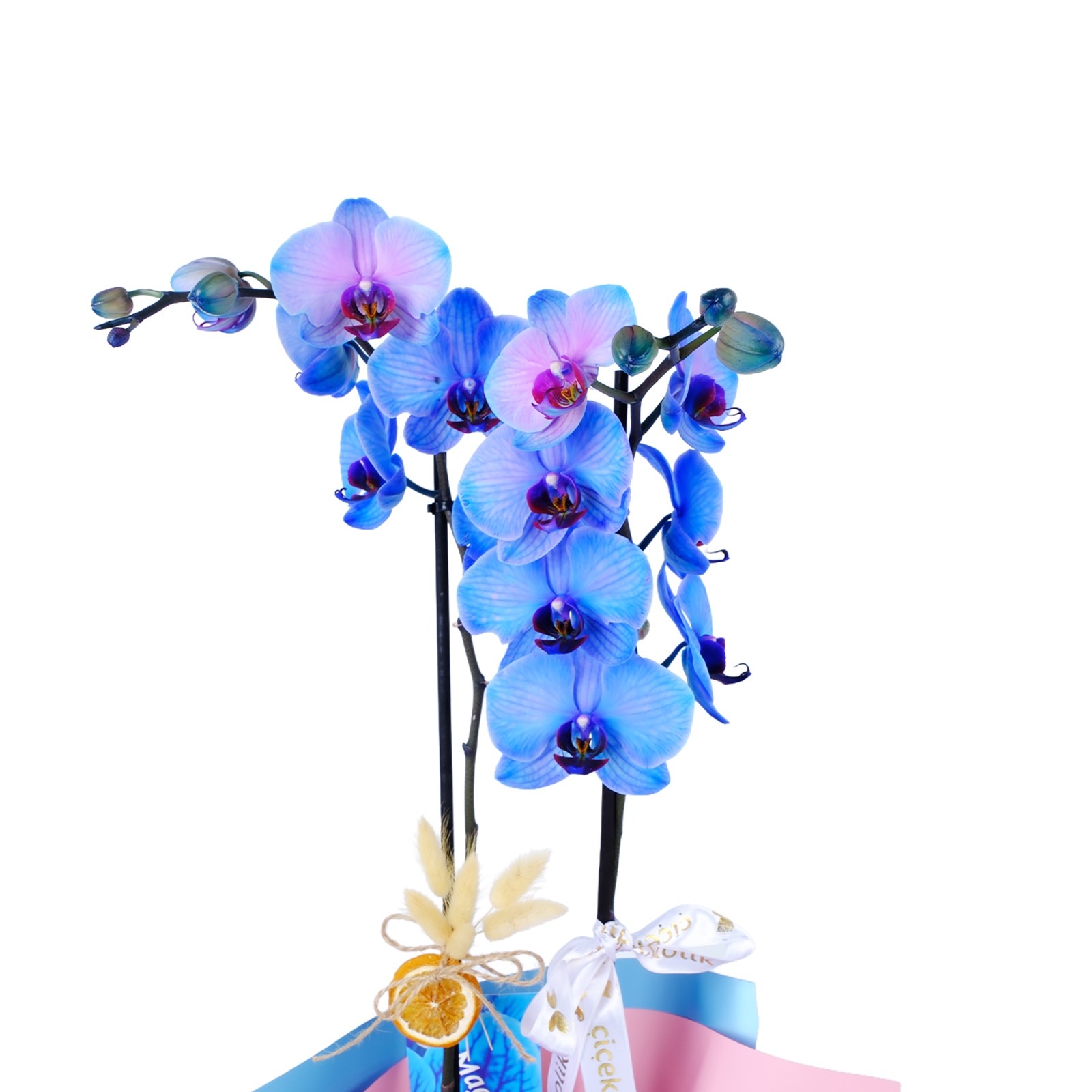 Zarif görünümü ve eşsiz rengiyle Harvest Blue Orkide, yaşam alanlarına modern bir dokunuş kazandırır. Modern tasarım ambalaj ve beyaz kurdele detayıyla hem sofistike hem de dikkat çekici bir tasarım sunar.