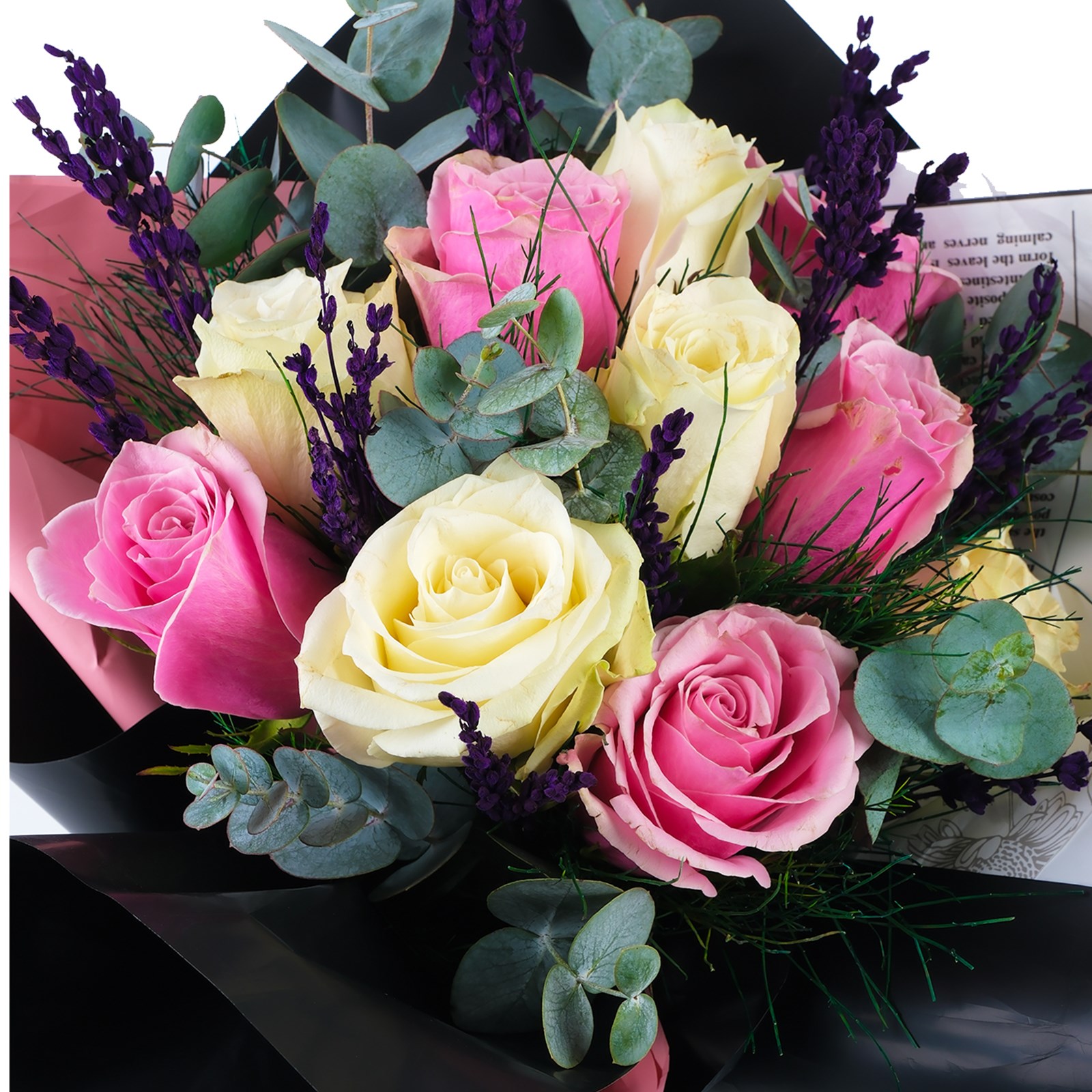 Pembe ve beyaz güllerin romantizmi Hello Mix Style, aşkın en tutkulu halini yansıtıyor. Modern tasarım ambalajın sofistike kontrastı, çarpıcı bir görsel sunarken okaliptus yaprakları kuru çiçekleriyle eşsiz bir dokunuş kazanılmıştır.