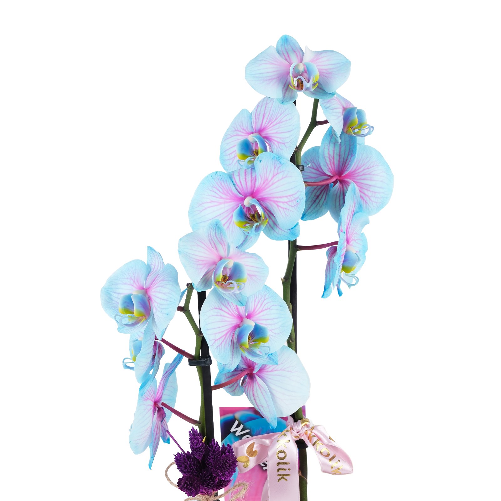 Zarif görünümü ve eşsiz rengiyle Luxe Velvet Blue Orkide, yaşam alanlarına modern bir dokunuş kazandırır. Mavi Dekoratif Saksısı ve Pembe kurdele detayıyla hem sofistike hem de dikkat çekici bir tasarım sunar.