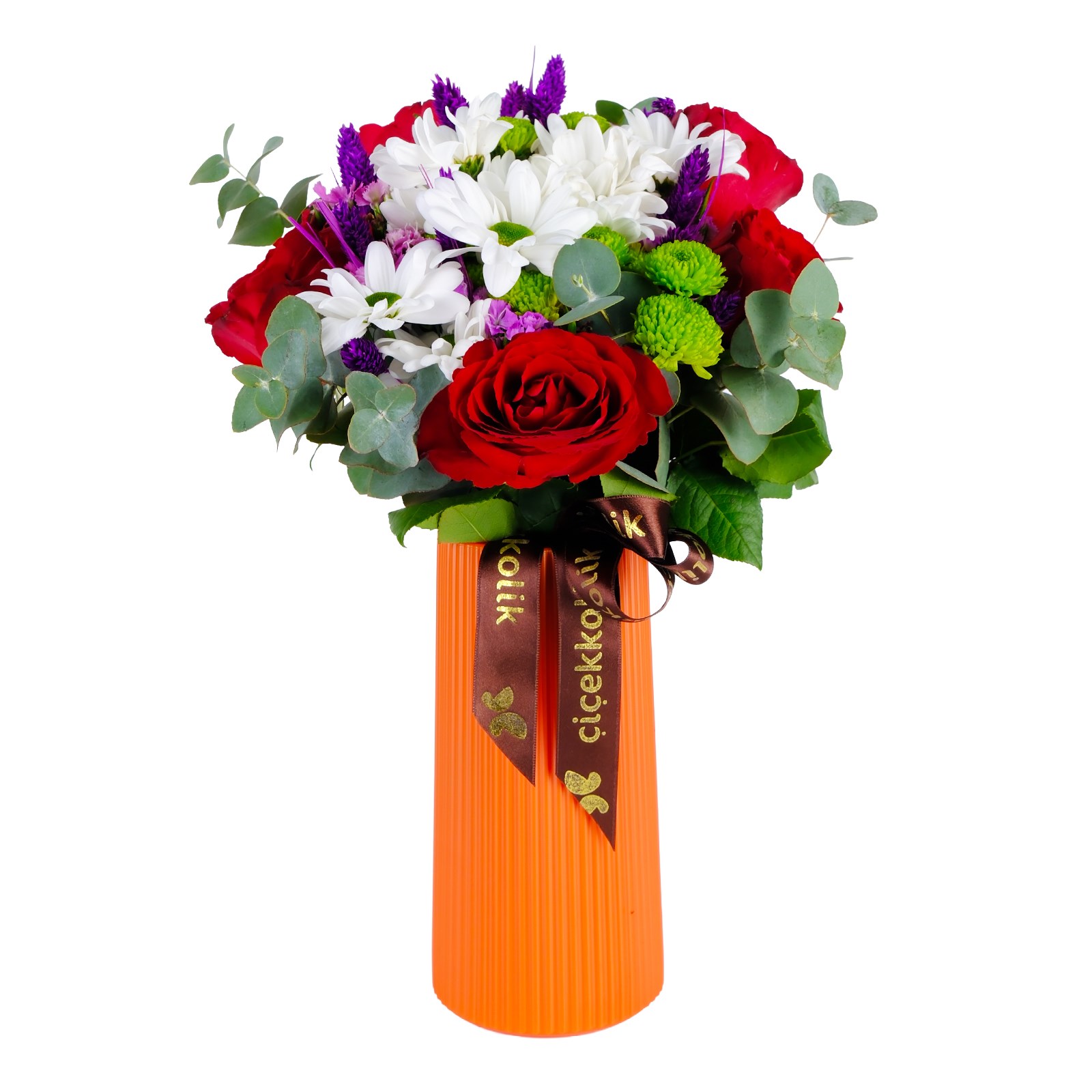 Güneşin sıcaklaığını ve enerjisini evinize taşıyan Mixed Arrangement, canlı kırmızı gül ve beyaz papatyalarıyla neşe ve mutluluk yayar.Kuru çiçekler ve okaliptus dalları bu eşsiz tasarıma doğal bir sıcaklık katarken , zarif turuncu polimer vazo ise modern bir şıklık sunar.