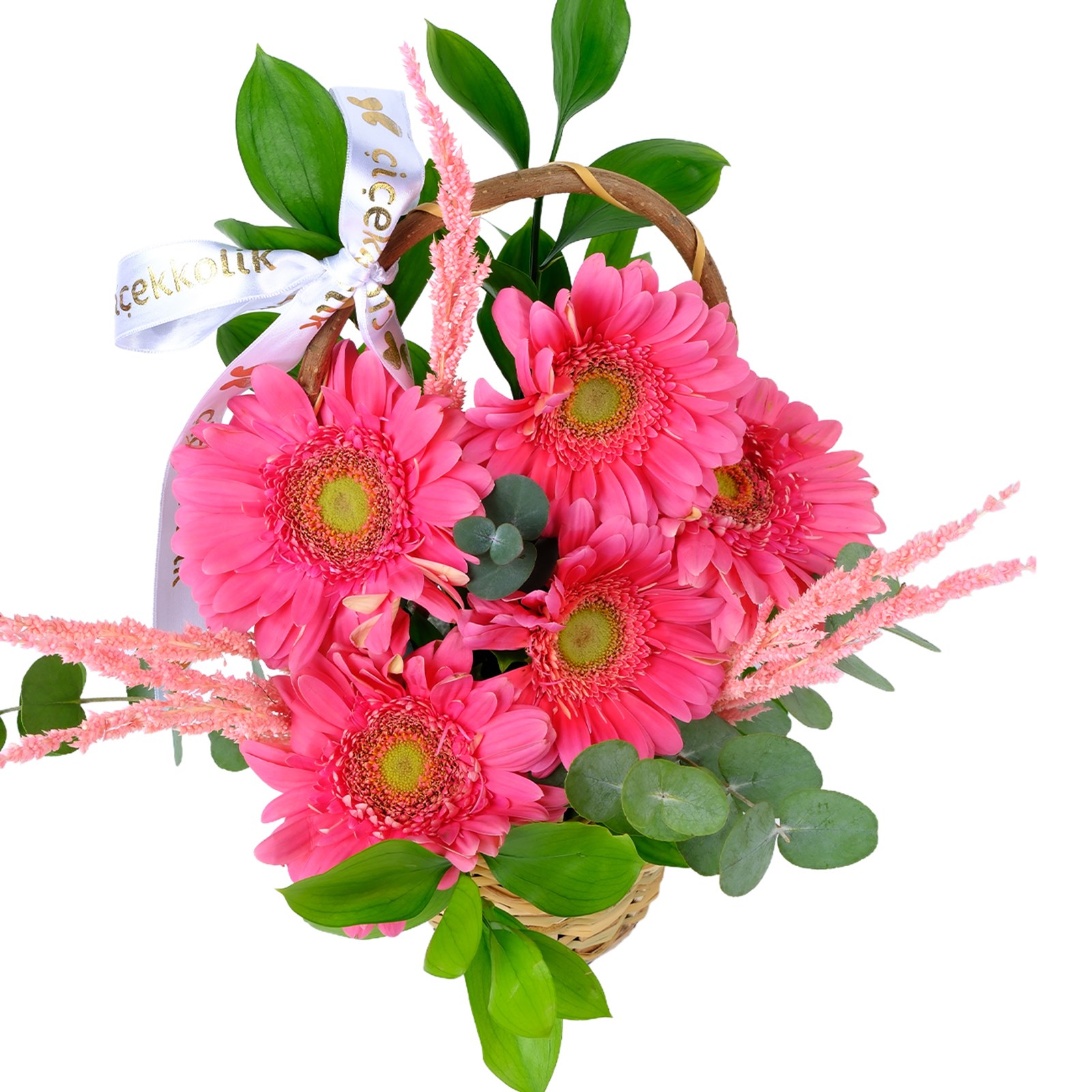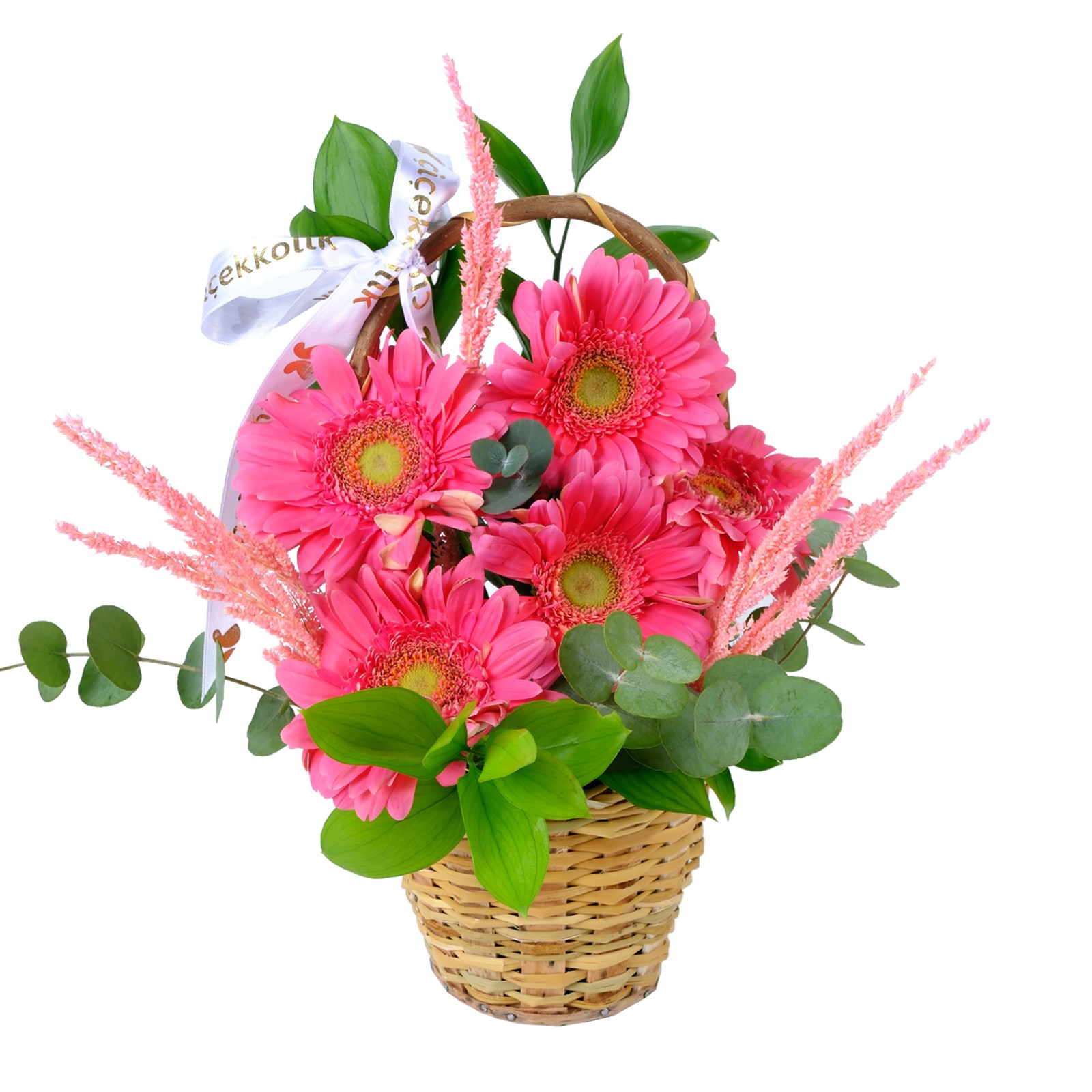 Nature Grace Gerbera Aranjmanı, doğal kokulu hasır sepet içinde sunulan, beş pembe gerbera oluşan sık bir aranjmandır.Hasır sepetle birleşerek, her türlü özel gün için mükemmel bir hediye seçeneği sunuyor.Bu aranjman, pembe ama etkileyici bir görünüm ile sevginizi, takdirinizi ya da özel duygularınızı en anlamlı şekilde ifade eder.