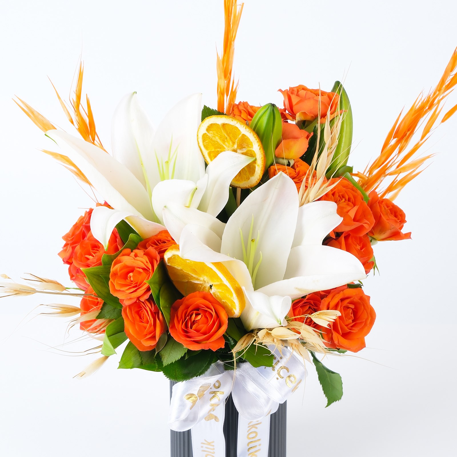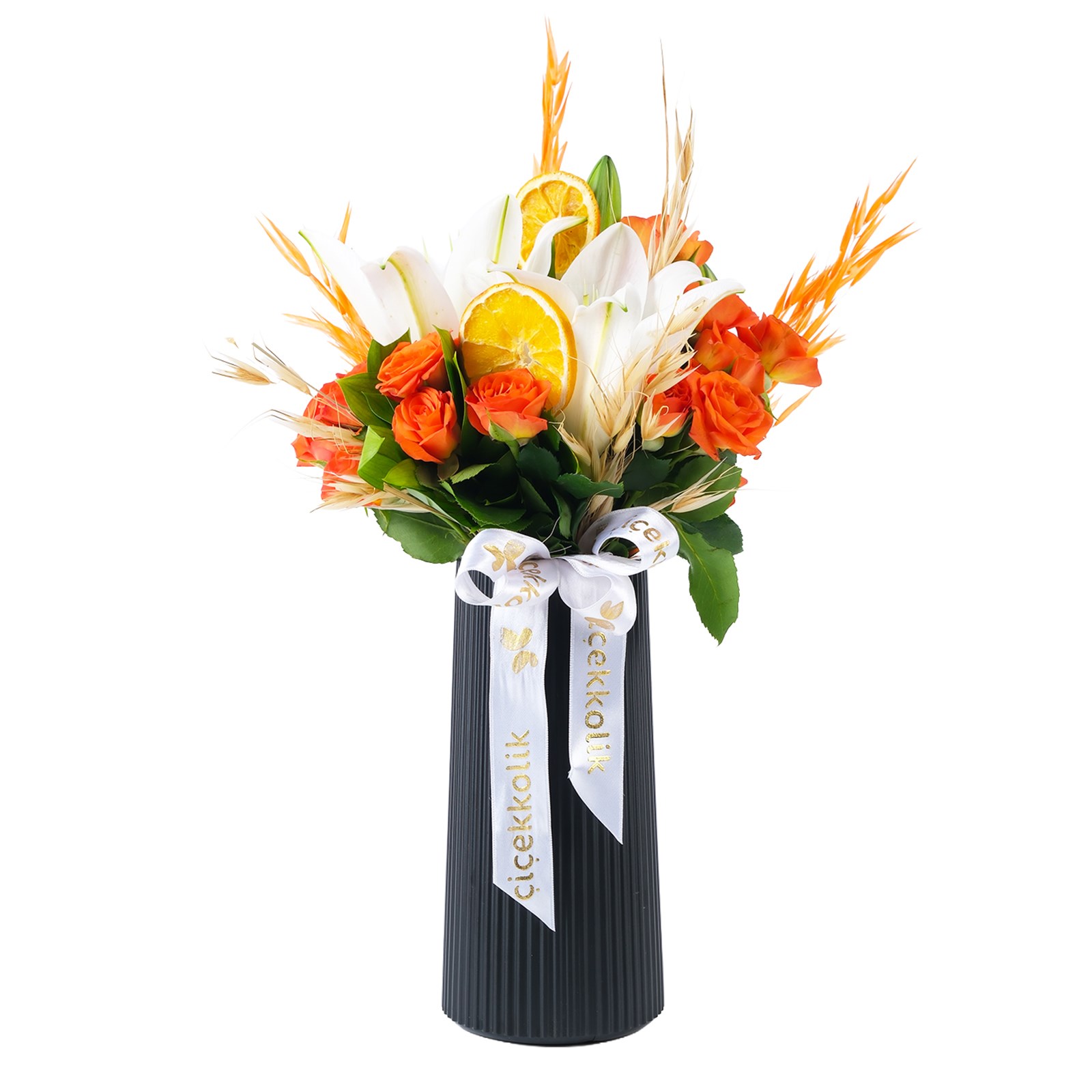 Turuncu Gül ve Beyaz Lilyum'un suya temas eden kısımlarını her gün tazeleyin. Daha fazla bilgi için Çiçek bakım rehberi sayfasına göz atabilirsiniz.