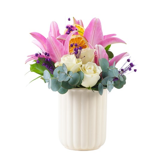 Turuncu güllerin romantizmi Orange & Çardak Gül Desıgn, aşkın en tutkulu halini yansıtıyor. Modern tasarım sofistike kontrastı, çarpıcı bir görsel sunarken grintirik ve kuru çiçekleriyle eşsiz bir dokunuş kazanılmıştır.