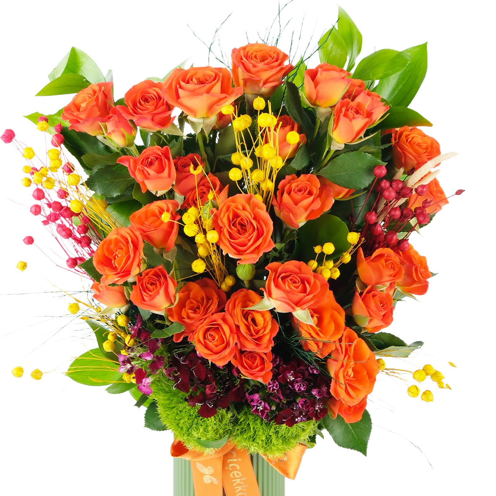 Çiçek Türleri:Turuncu güller, Grintirik, kuru çiçekler,hüsnüyusuflar