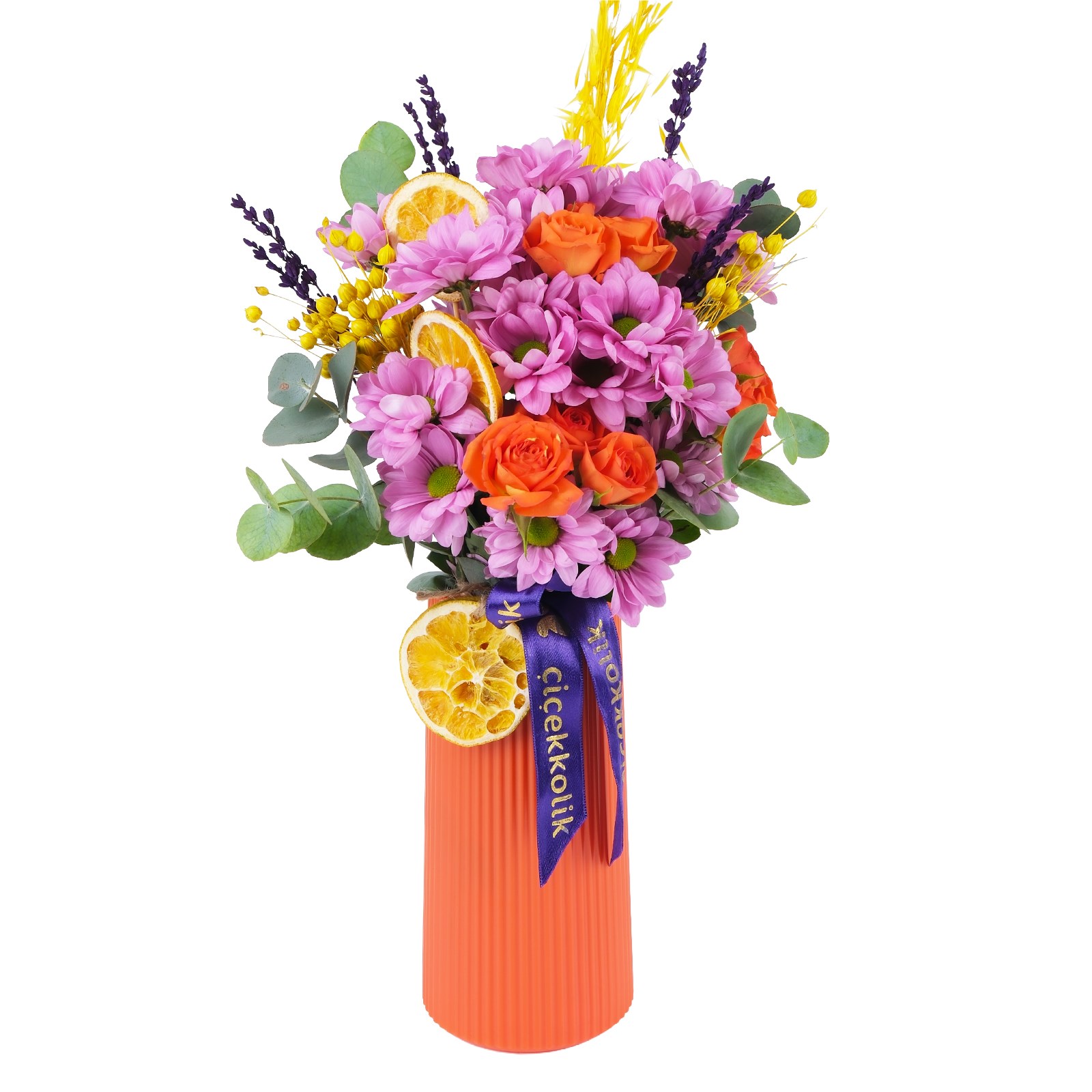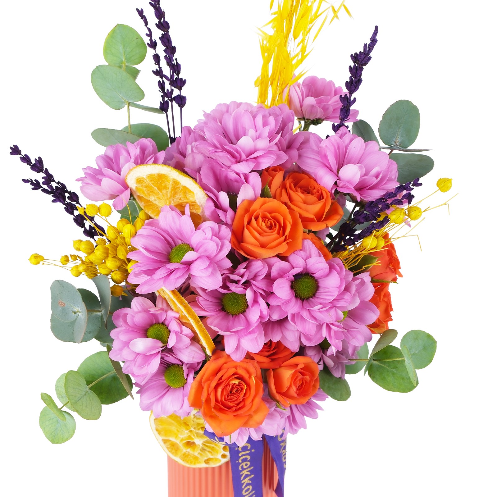 Zarafetin en etkileyici haliyle hazırlanmış Orange & Pink Daisy saflığını ve tazeliğini büyük bir aranjmanla sunar. Özel günler ve kutlamalar için etkileyici bir seçenektir.