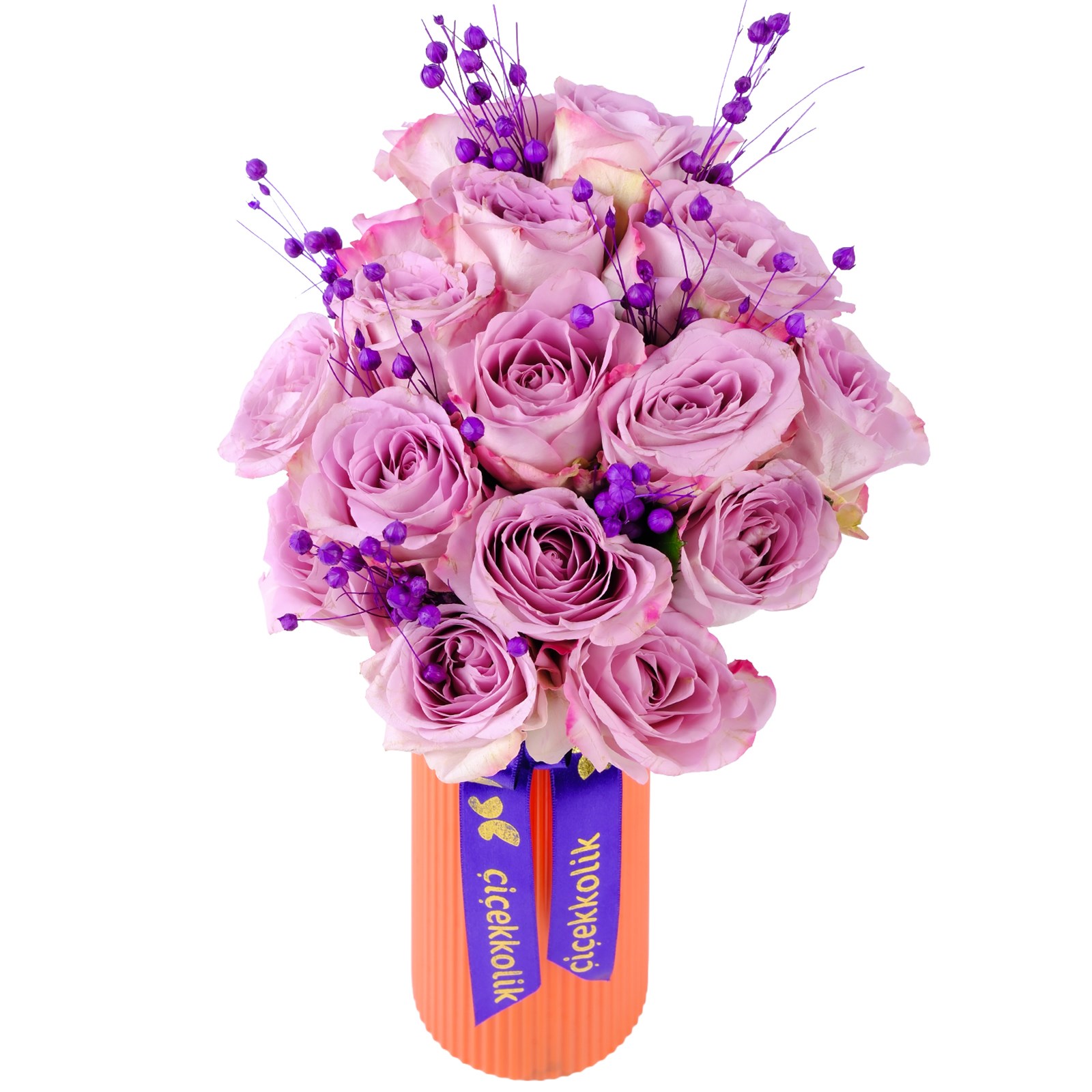 Lila güllerin romantizmi Orange Vase & Lilac Roses, aşkın en tutkulu halini yansıtıyor. Modern tasarım sofistike kontrastı, çarpıcı bir görsel sunarken kuru çiçekleriyle eşsiz bir dokunuş kazanılmıştır.