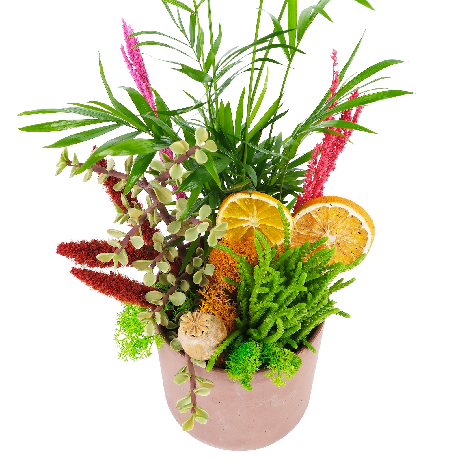 Yeni ev kutlaması, ofis açılışı, terfi tebrikleri veya doğal dekorasyon sevenler için mükemmel bir tercihtir. Tropikal dokunuşu sayesinde bulunduğu ortama tatildeymiş hissi katar, modern ve minimal tarzıyla da her zevkle hitap eder.