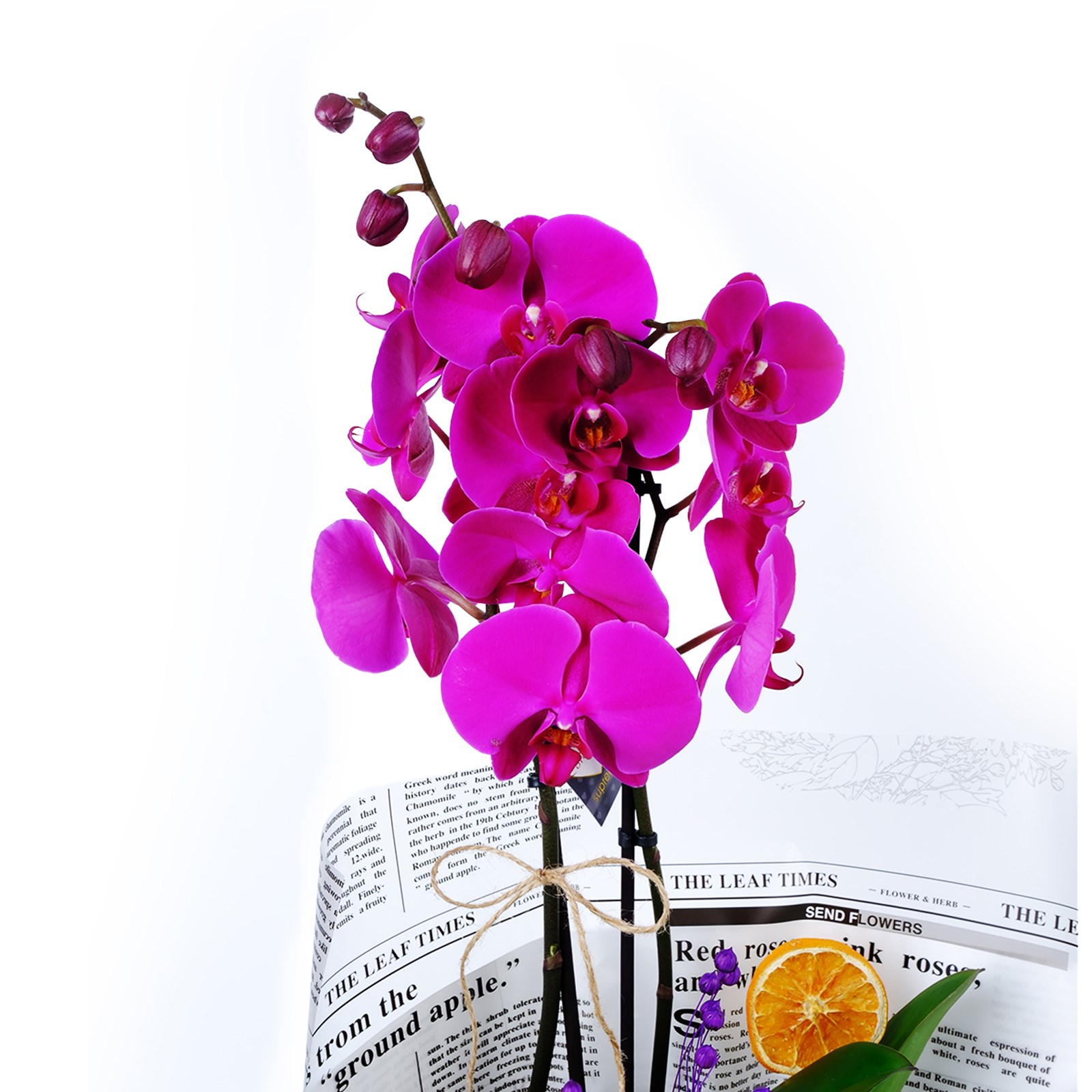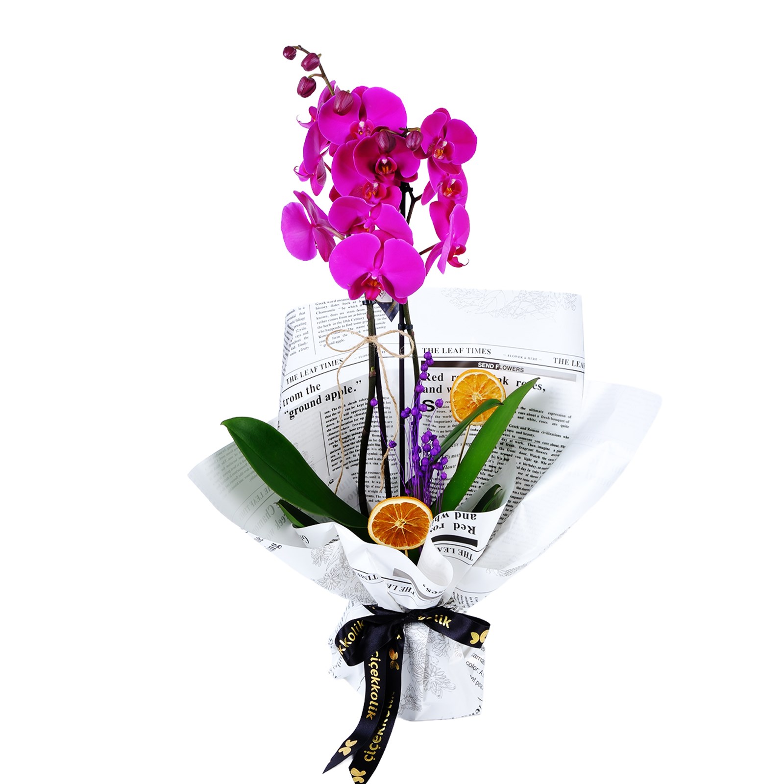 Zarif görünümü ve eşsiz rengiyle Purple Fairy Tale Mor Orkide, yaşam alanlarına modern bir dokunuş kazandırır.Gazete tasarım ambalaj ve Siyah kurdele detayıyla hem sofistike hem de dikkat çekici bir tasarım sunar.