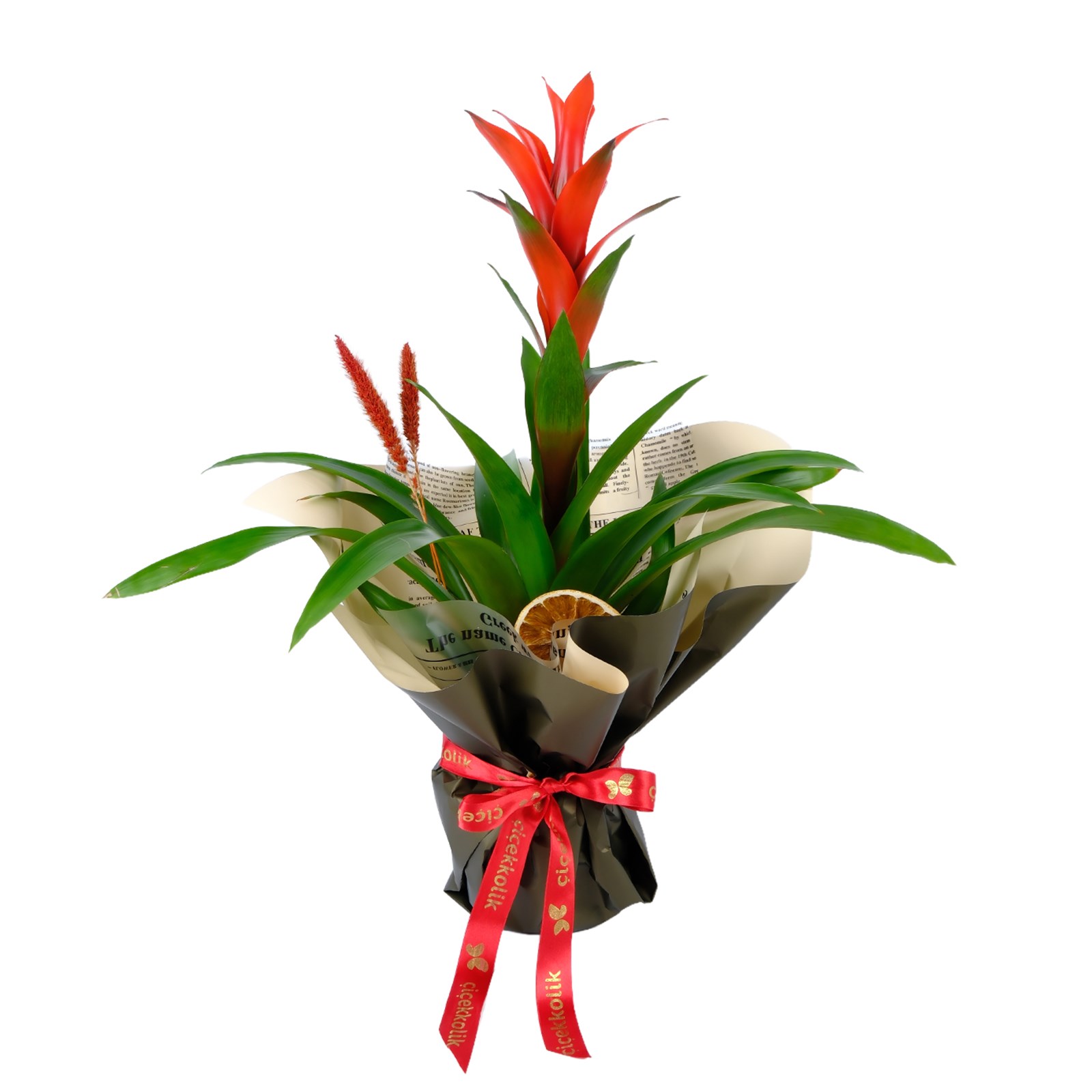 Doğanın en göz alıcı renklerini barındıran Red Guzmania Bitkisi, kırmızı guzmania çiçekleriyle tutkulu sevgiyi, büyük yeşil yapraklarıyla doğallığı simgeliyor. Kırmızı ve Yeşil fresh tonlarıyla harmanlanmış bu özel tasarım, sevdiklerinize unutulmaz bir hediye sunmak için mükemmel bir seçenek. Şık ambalajı ve zarif ssülemeleriyle yaşam alanlarına enerji katarken, dekoratif kuru meyve ve aksesuar detaylarıyla fark yaratıyor.