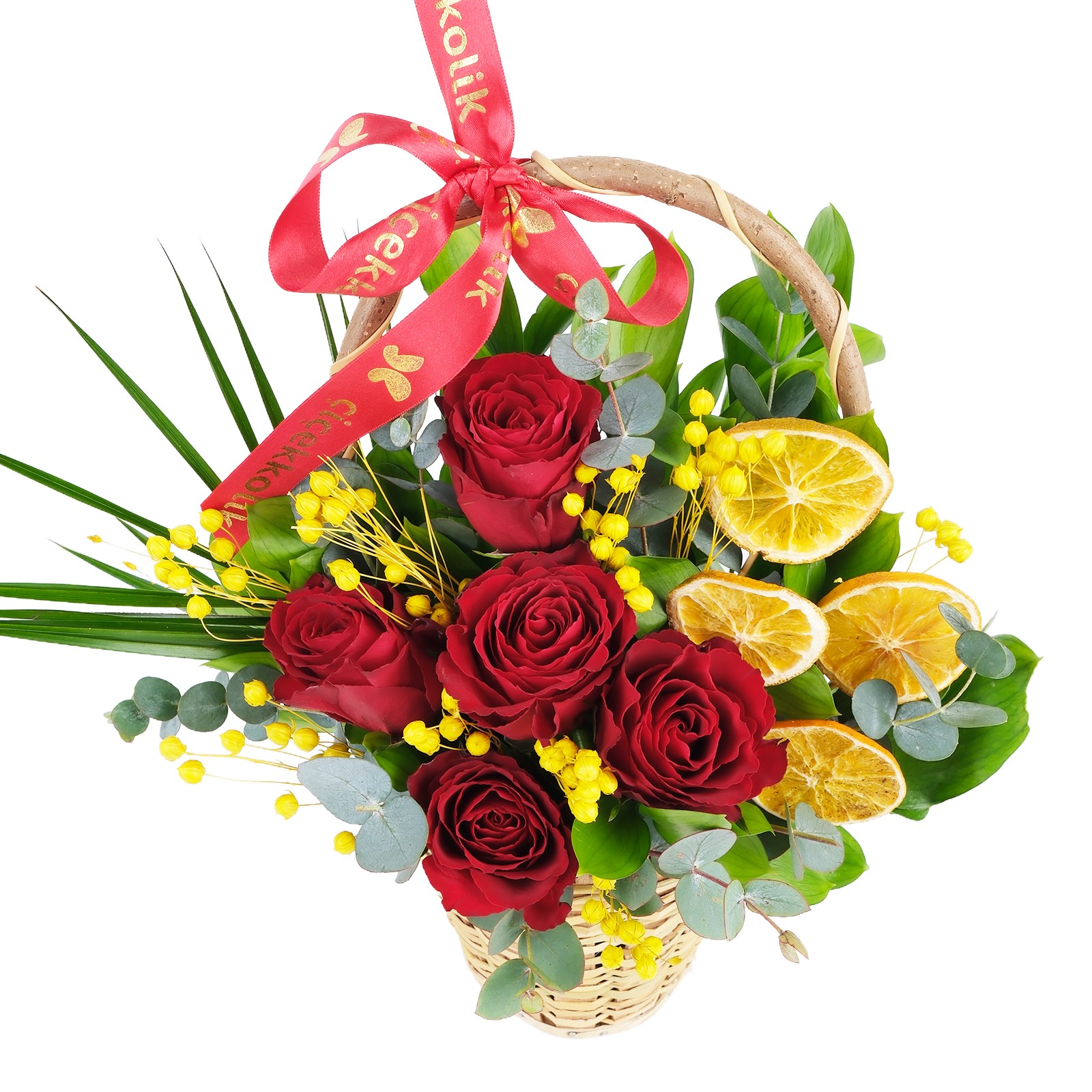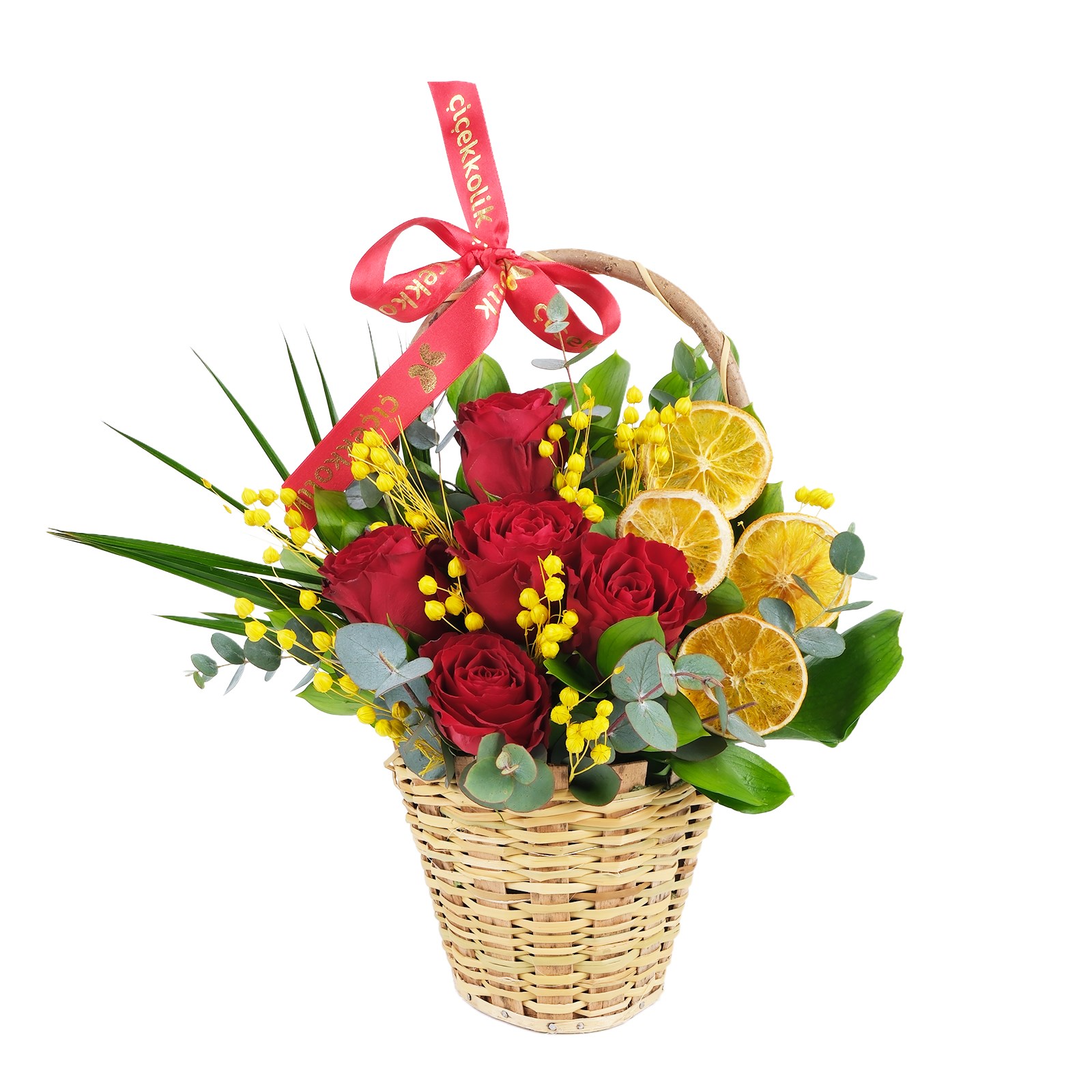 Çiçek Türü:Sepette Kırmızı Gül ve portakal halkaları