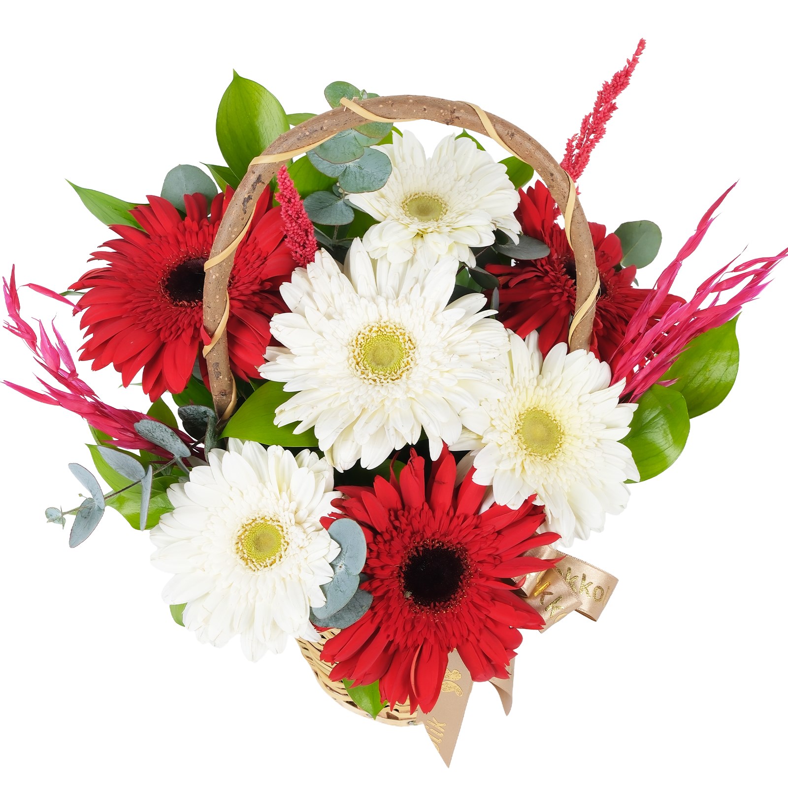 Çiçek Türü:Sepette Beyaz ve Kırmızı Gerbera