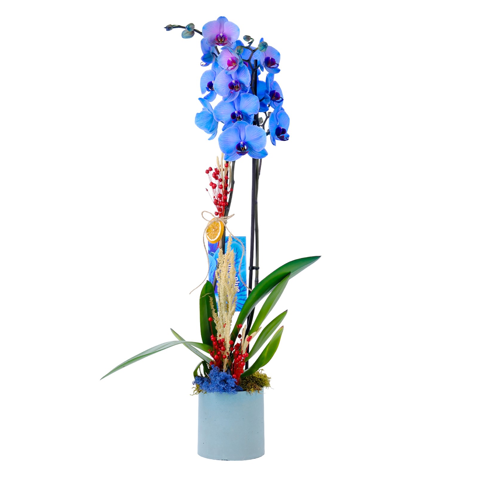 Zarif görünümü ve eşsiz rengiyle Çift Dallı Mavi Orkide, yaşam alanlarına modern bir dokunuş kazandırır. Mavi Beton Saksısı ve naturel kurdele detayıyla hrm sofistike hem de dikkat çekici bir tasarım sunar.