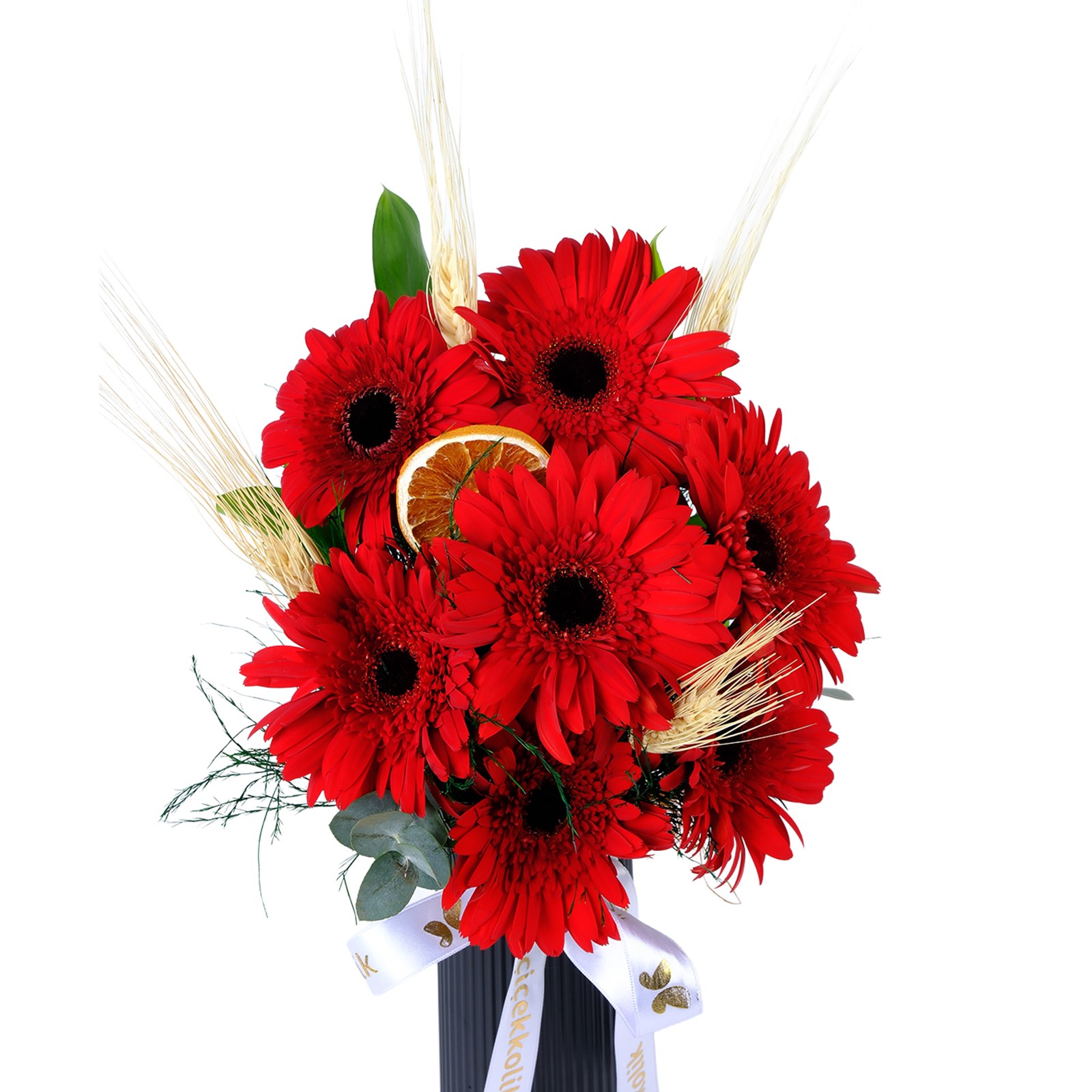 • Kırmızı gerbera ve kuru çiçek karışımı