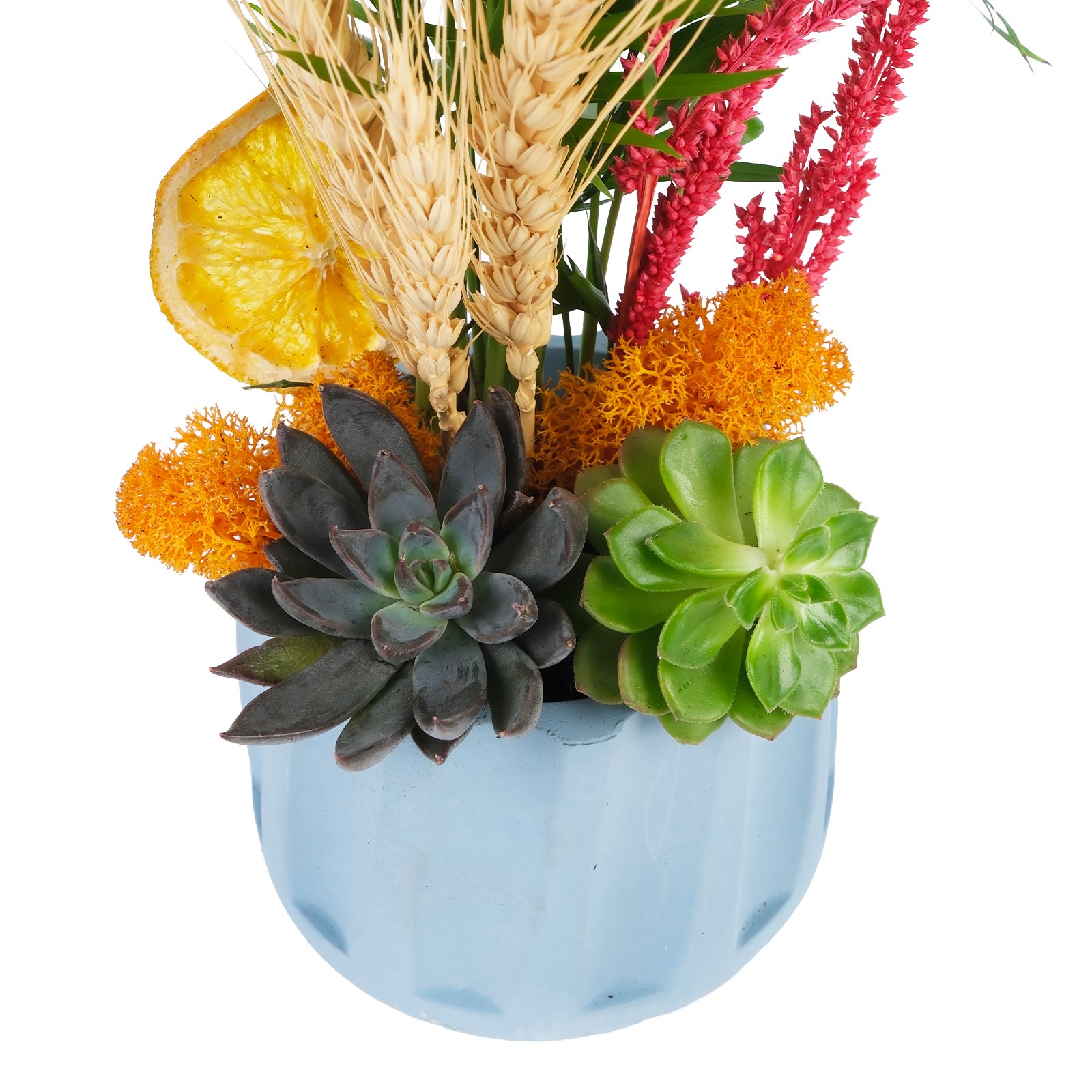 Bakımı oldukça kolaydır. Sukulent kısmını haftada 1 sulamak yeterlidir; aşırı su vermekten kaçının. Tropik yapraklar toprağı hafif nemli olacak şekilde sulanmalı, doğrudan güneş ışığından korunmalıdır. Aranjmanı aydınlık, havadar bir yerde konumlandırarak uzun süre taze ve canlı kalmasını sağlayabiliriz.