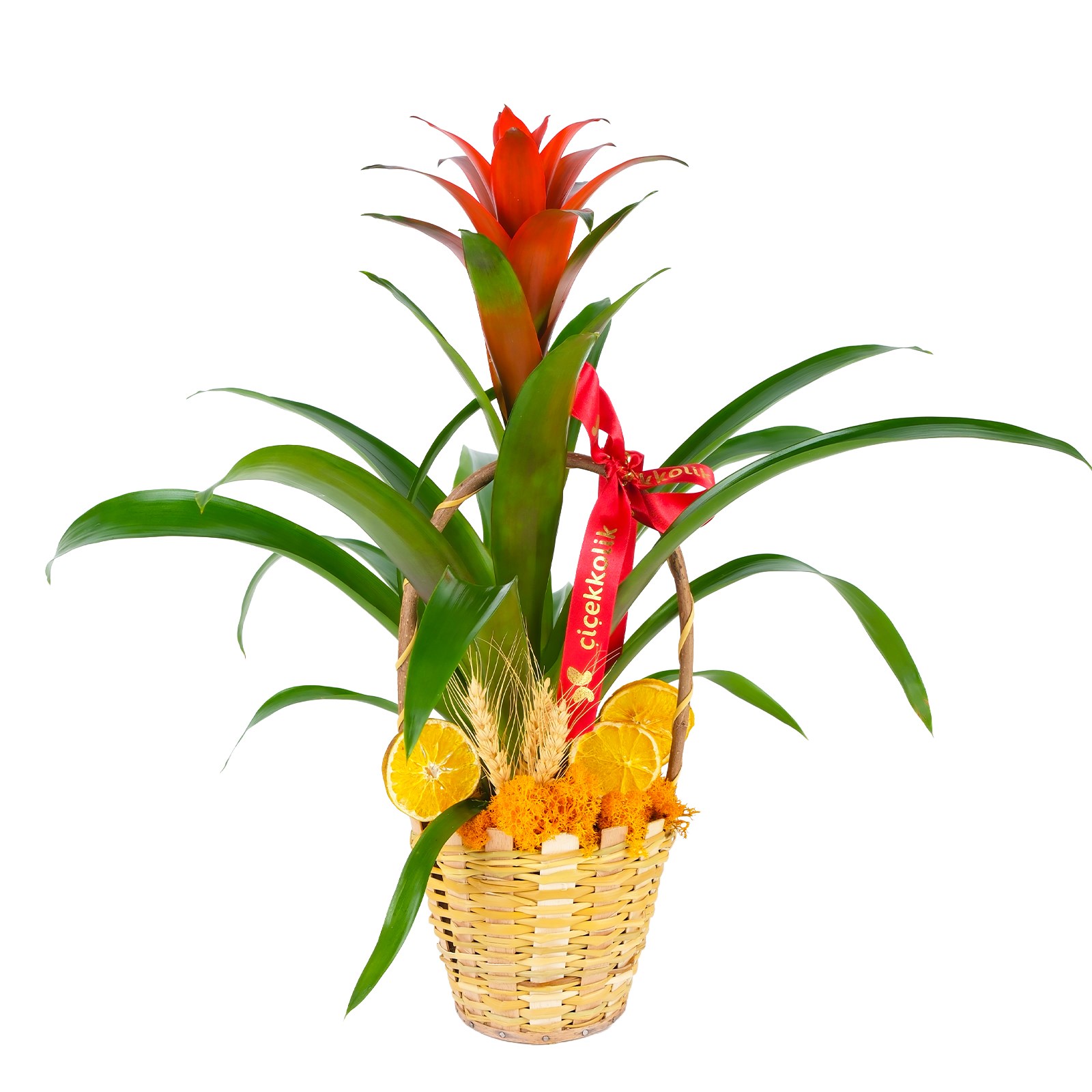 Saflık, huzur ve zarafeti bir araya getiren Summer Time Guzmania Basket, geniş ve parlak geniş yapraklarıyla doğanın sakinleştirici etkisini evinize taşırken, zarif kırmızı çiçeğiyle göz kamaştırıcı bir şıklık sunar.