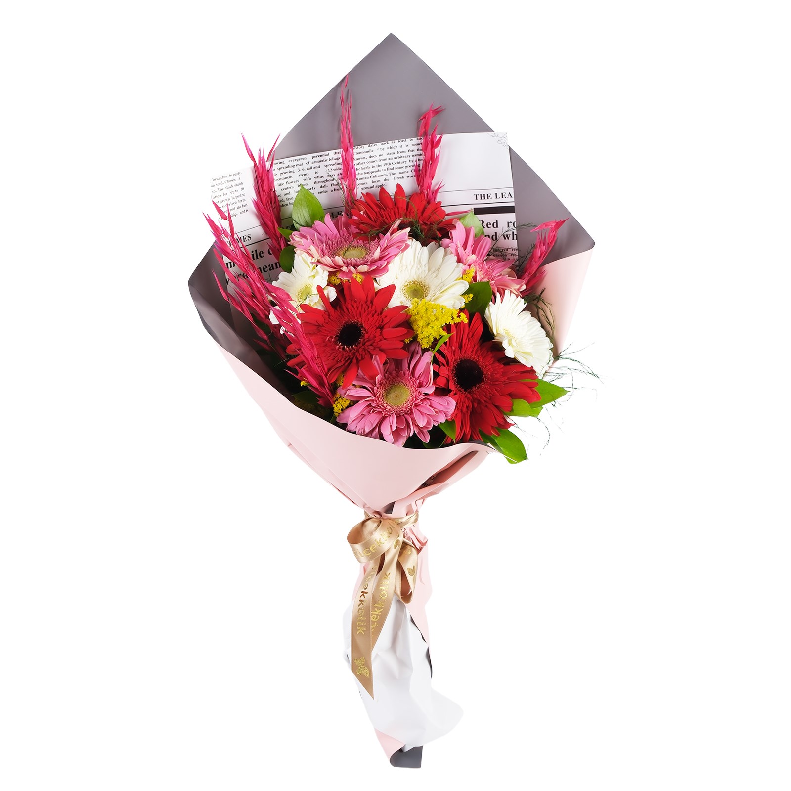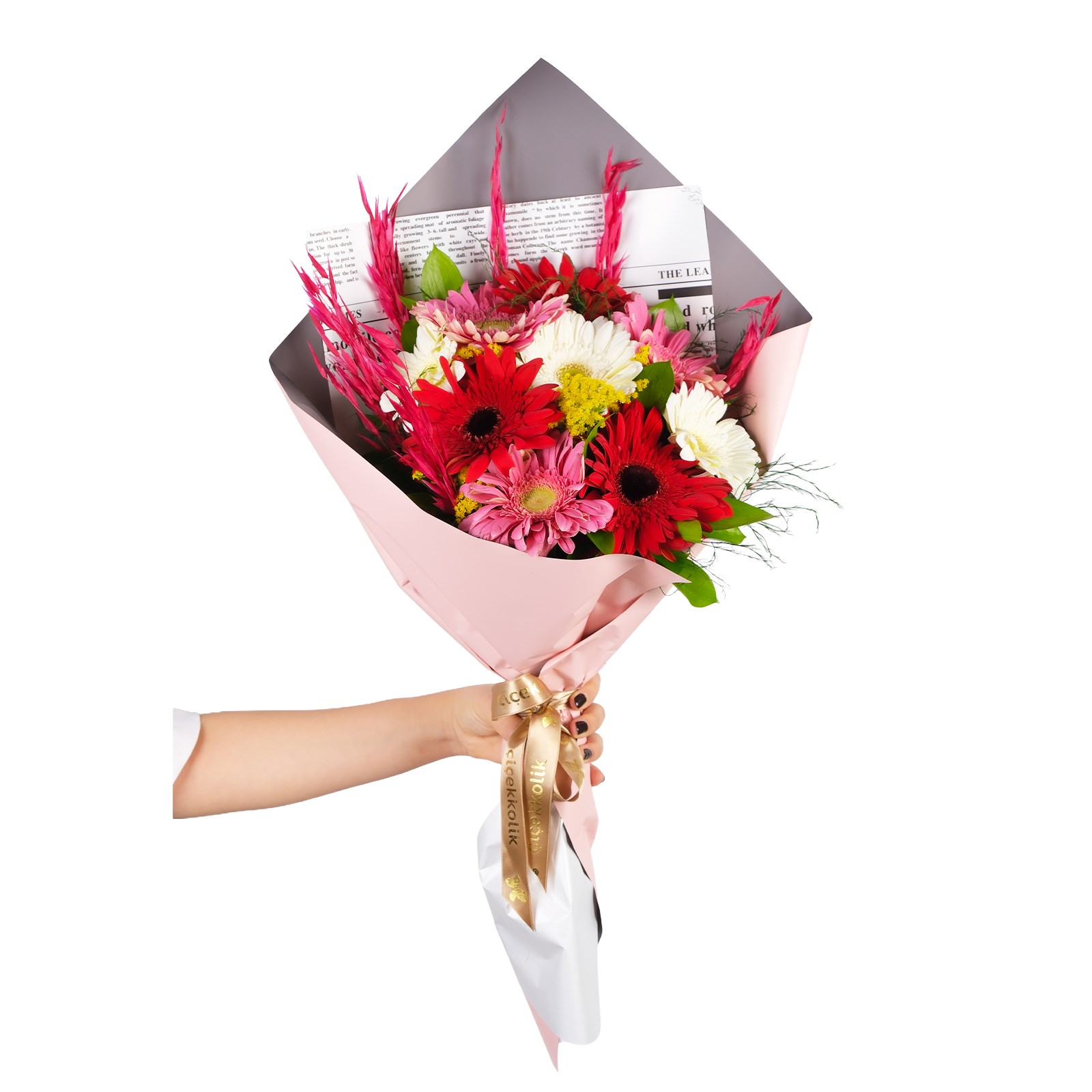 Mix gerberaların saçtığı pozitif enerji, modern ambalajın doğal kokusu ve modern pembe ambalajla birleşerek sevdiklerine en samimi duygularını taşıyor.Bukete eşlik eden kuru çiçekler tasarıma hem rustik bir hava katıyor hem de doğanın renkli bir yansımasını sunuyor.