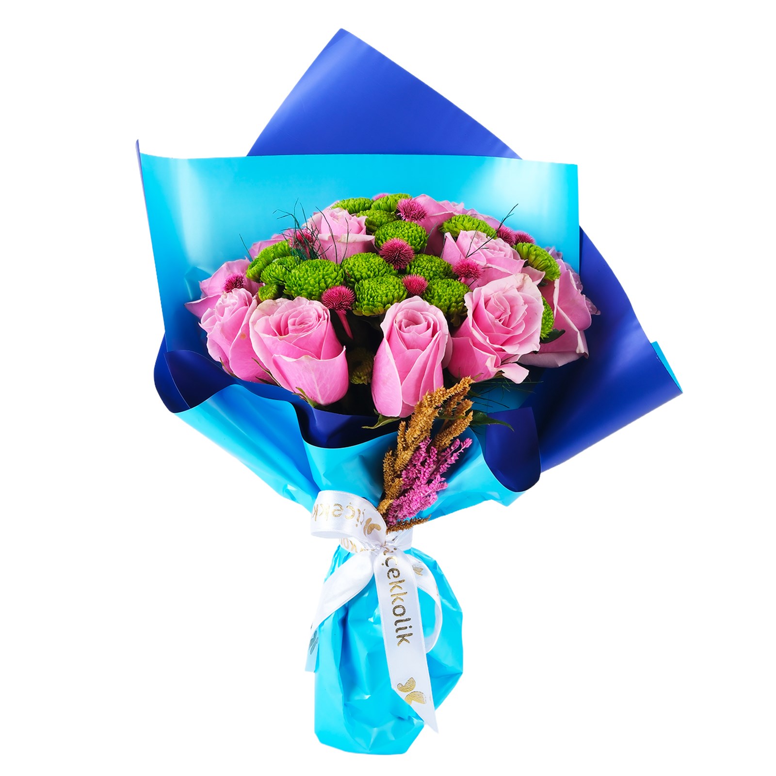 Çiçek Türleri:Pembe güller, yeşil biçmeler, kuru çiçekler