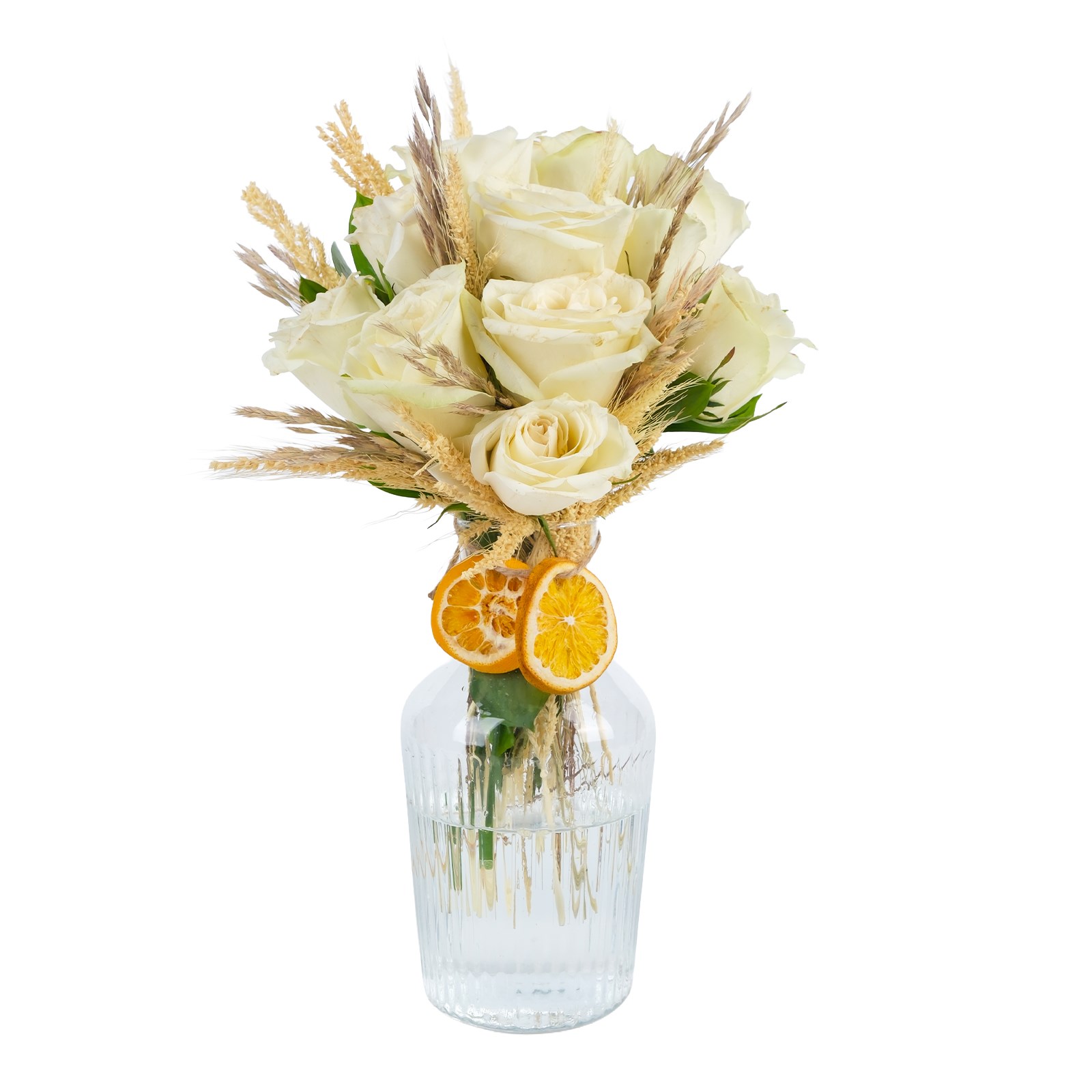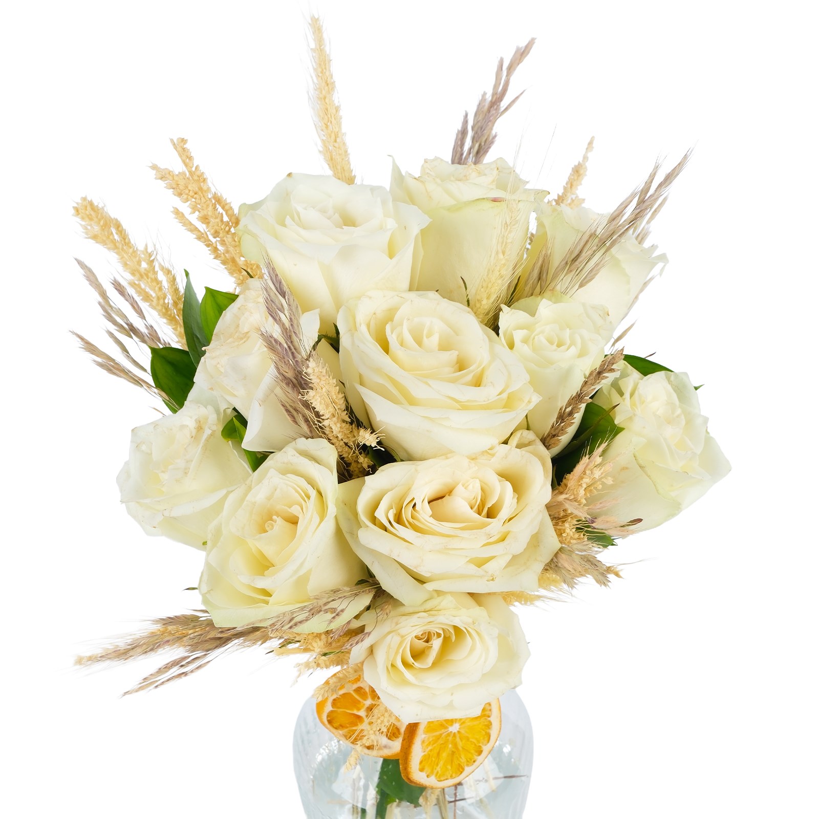 Enerjisi yüksek saflığın buluştuğu White Blossom 11 Beyaz Gül , modern ve ferah bir görünüm sunar. Beyaz güller, kuru çiçek dalları zarif bir kompozisyon oluşturur.