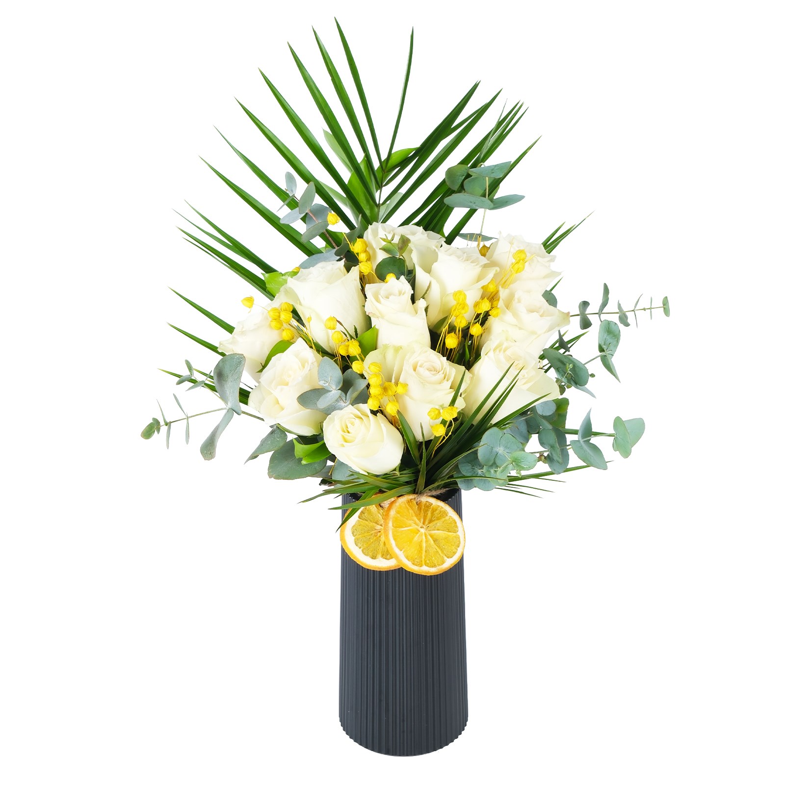 Enerjisi yüksek renklerin buluştuğu White Life Beyaz Gül Vazosu, modern ve ferah bir görünüm sunar. Beyaz güller ve kuru çiçek dalları zarif bir kompozisyon oluşturur.
