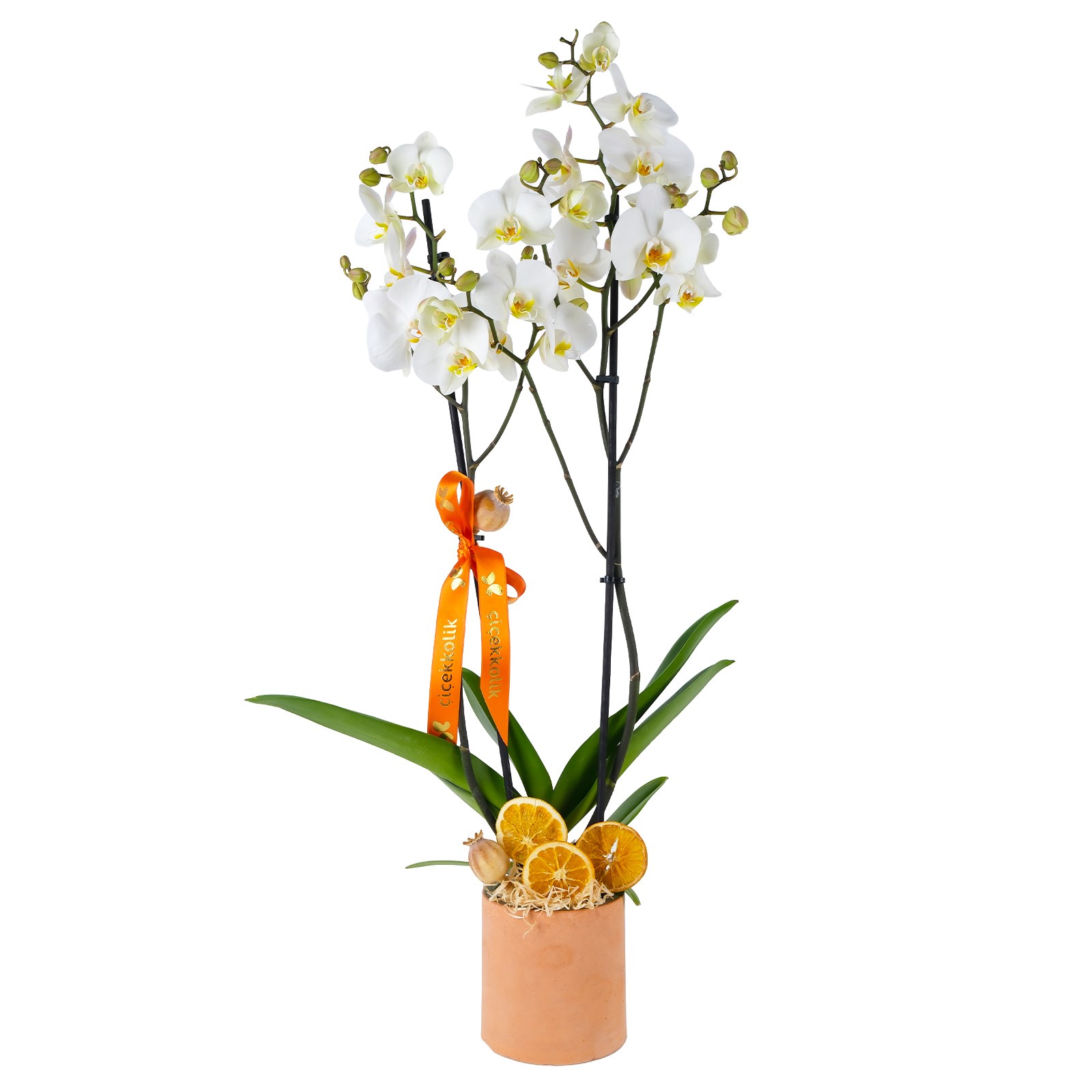 Zarif görünümü ve eşsiz rengiyle You & Go Çift Dal Beyaz Orkide, yaşam alanlarına modern bir dokunuş kazandırır. Beton Saksısı ve Turuncu kurdele detayıyla hem sofistike hem de dikkat çekici bir tasarım sunar.