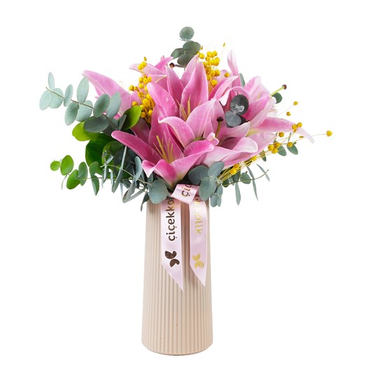 Tek renk ya da farklı renklerden oluşan bir lilyum vazosu hem görsel olarak hem de ortam havasını ferahlatması açısından güzel olabilir.